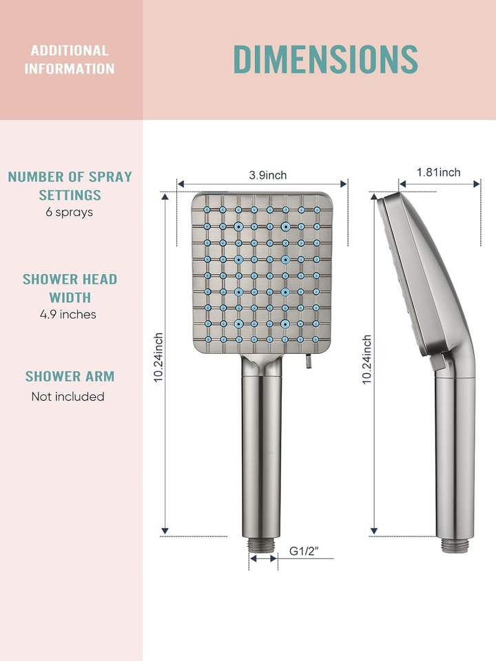 ?High pressure Water saving?: The shower has a large 4.9-inch panel with a unique internal space structure and pressure boosting technology. It provides a full-coverage showering experience even under low water pressure. Let you fully enjoy the pleasure of showering.