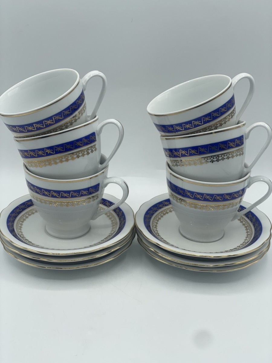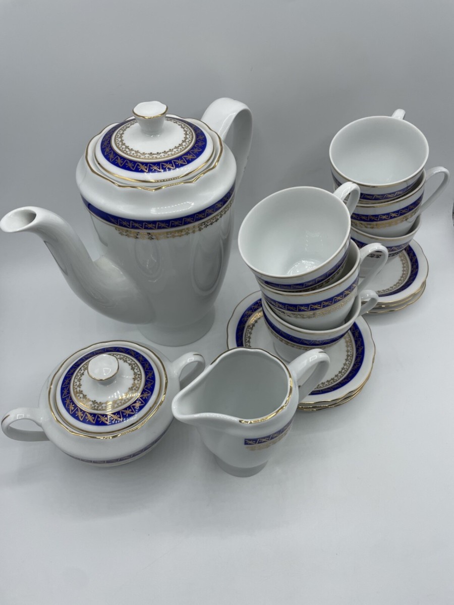 Vintage 1790 Cmielow Made in Poland Tea Set Creamer Sugar Bowl 6 cups and saucers Pot Filigree Bs311