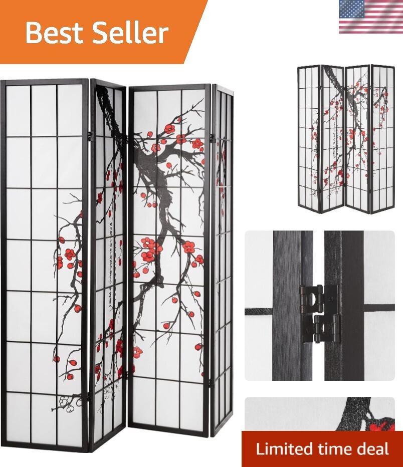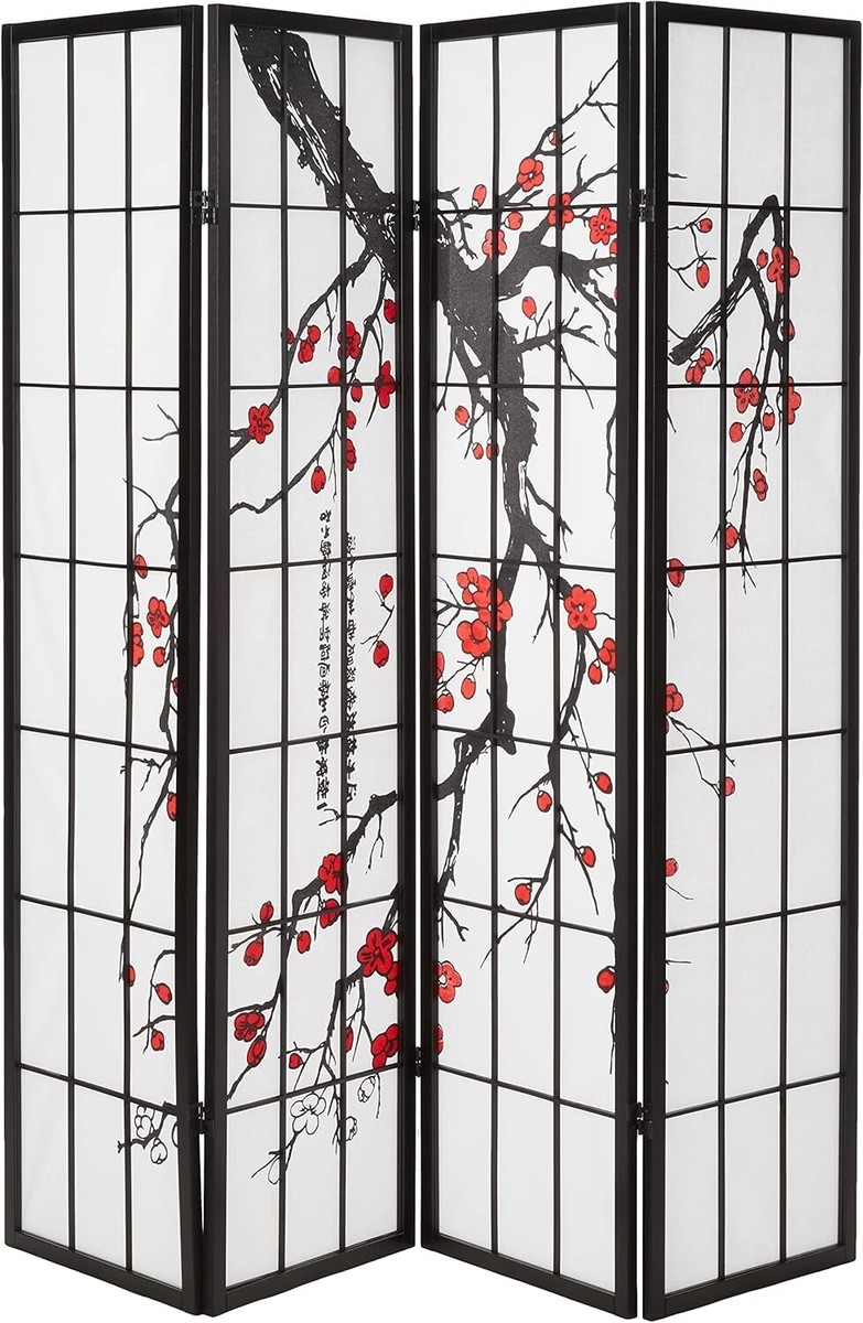 Stylish with a clean design, the Plum Blossom 4-Panel Screen Room Divider is a simple yet effective way to create a separation within a room without having to build a permanent wall partition. It's perfect for when you want to provide a little privacy within a particular space in your home. The thick, shoji-inspired rice paper blocks view while still letting light in. Crafted of hardwood and finished in black, this 4-panel divider makes a decorative solution for your home.