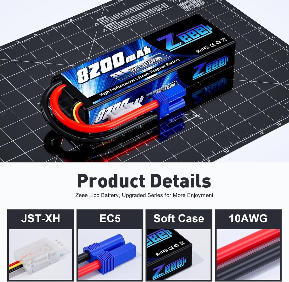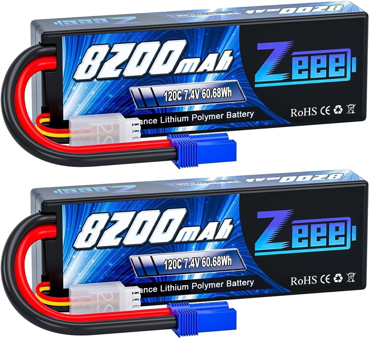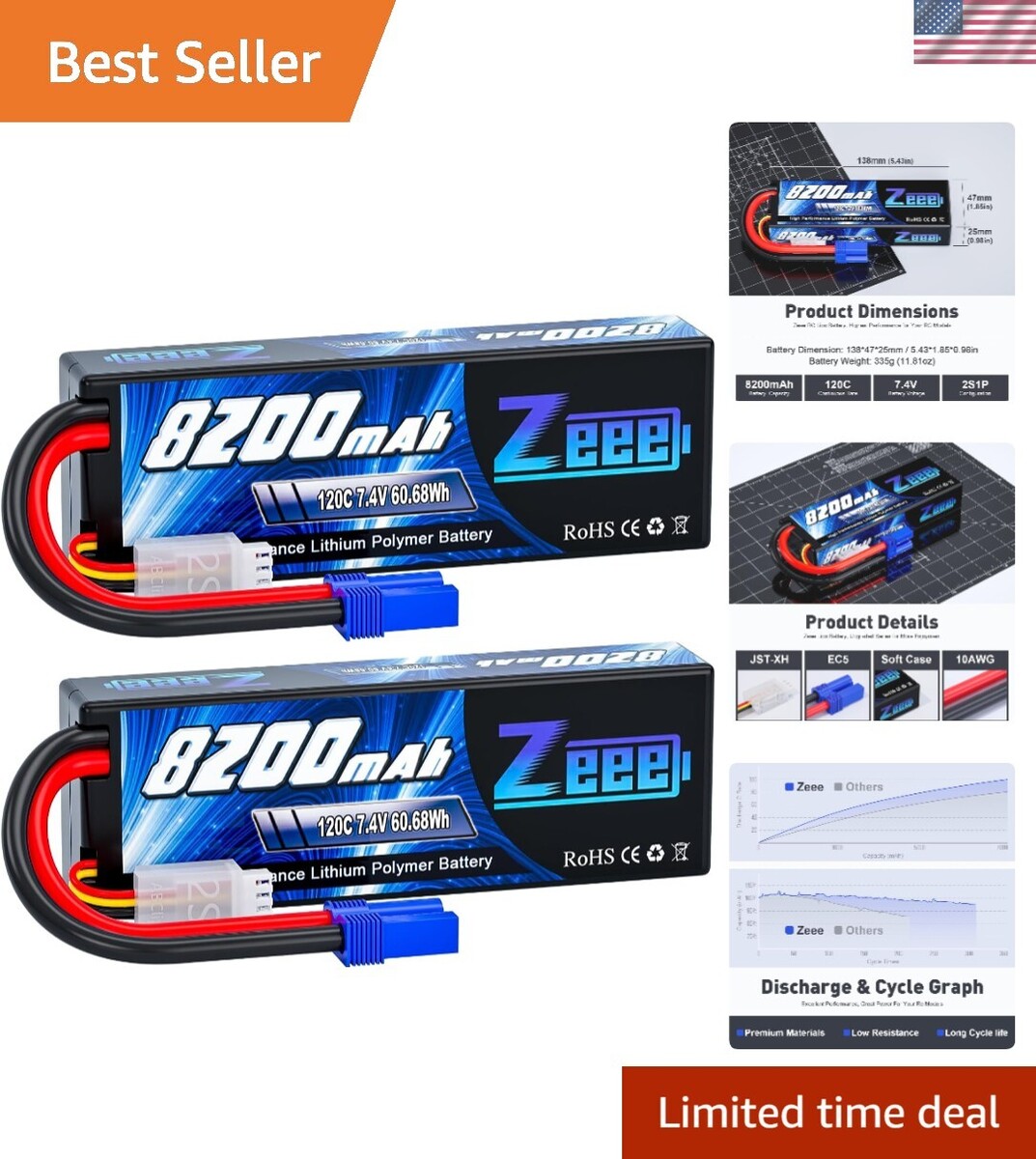 2S Lipo Battery 8200mAh 7.4V 120C Hard Case RC Car Battery with EC5 Plug for ...