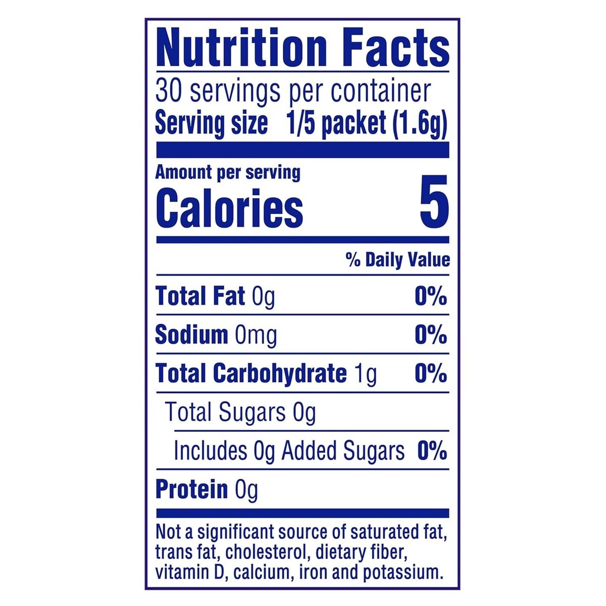 Delivers low calorie refreshment with only 5 calories per serving.