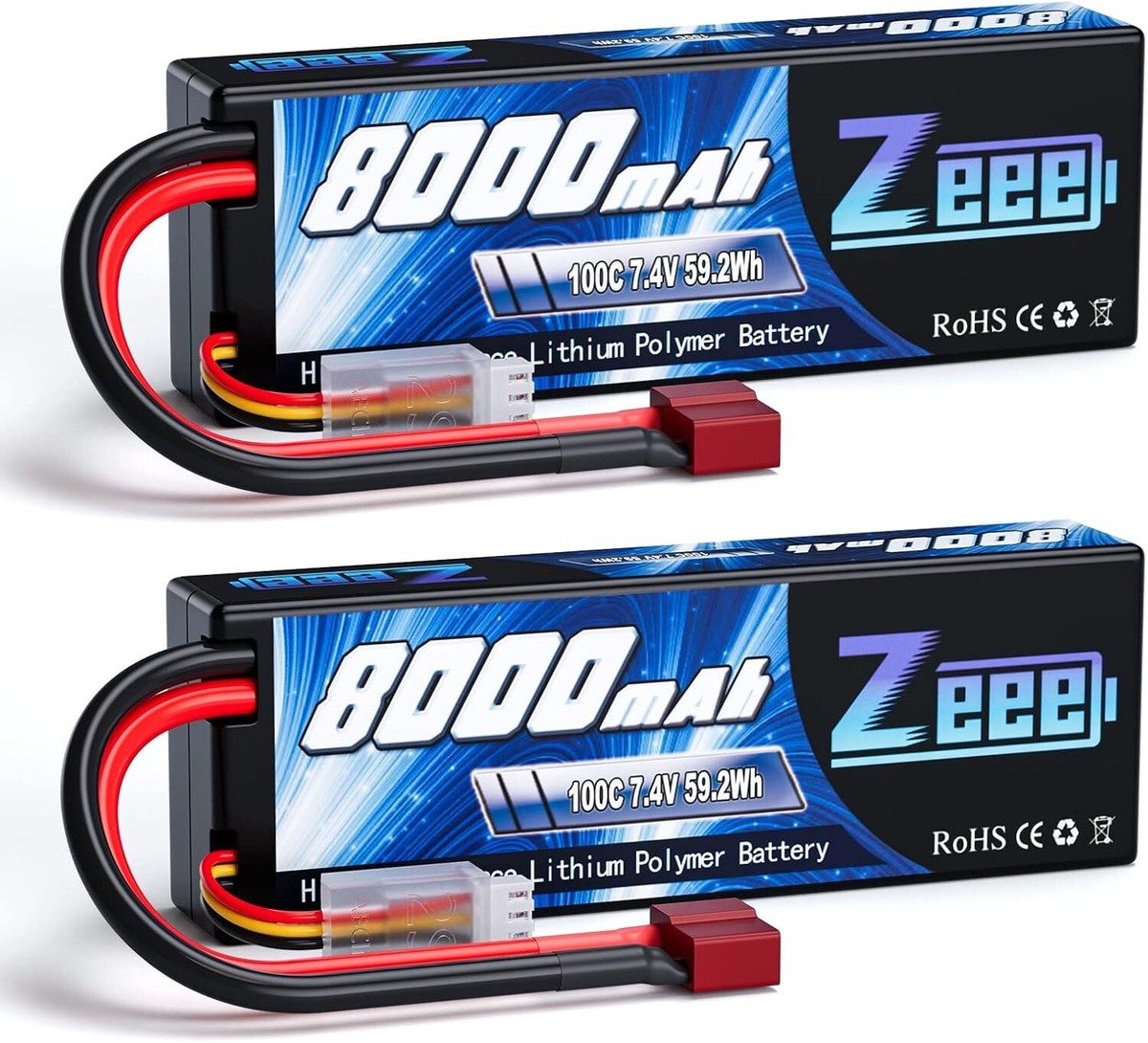 2S Lipo Battery 8000mAh 100C Hard Case with Deans T Plug for RC Car Truck Truggy Boat Helicopter2 Pack