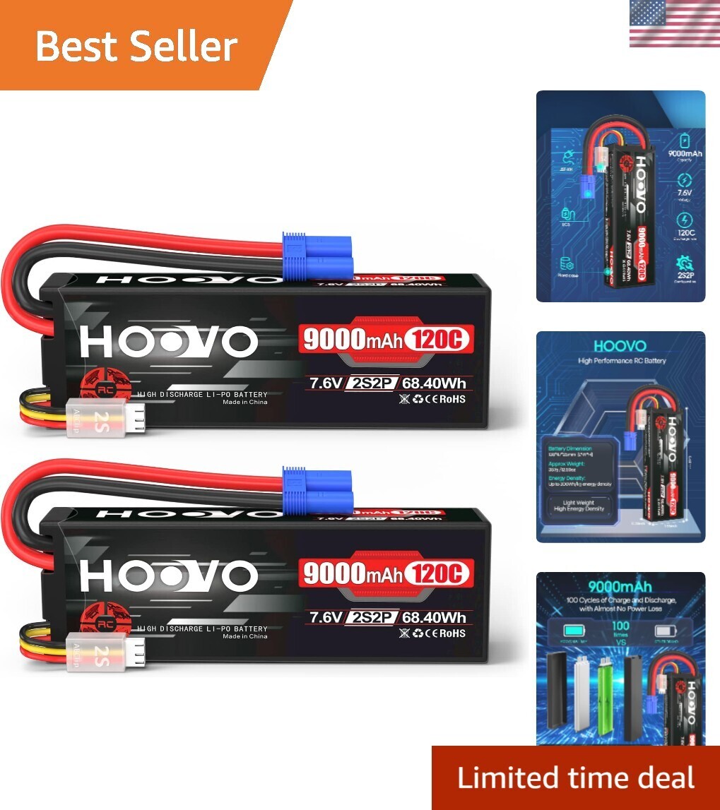 2S Lipo Battery 9000mAh 120C RC Battery High Voltage Hard Case EC5 Plug Compatible for RC Cars Boats Trucks Buggies Drones RC Vehicles 2 Pack