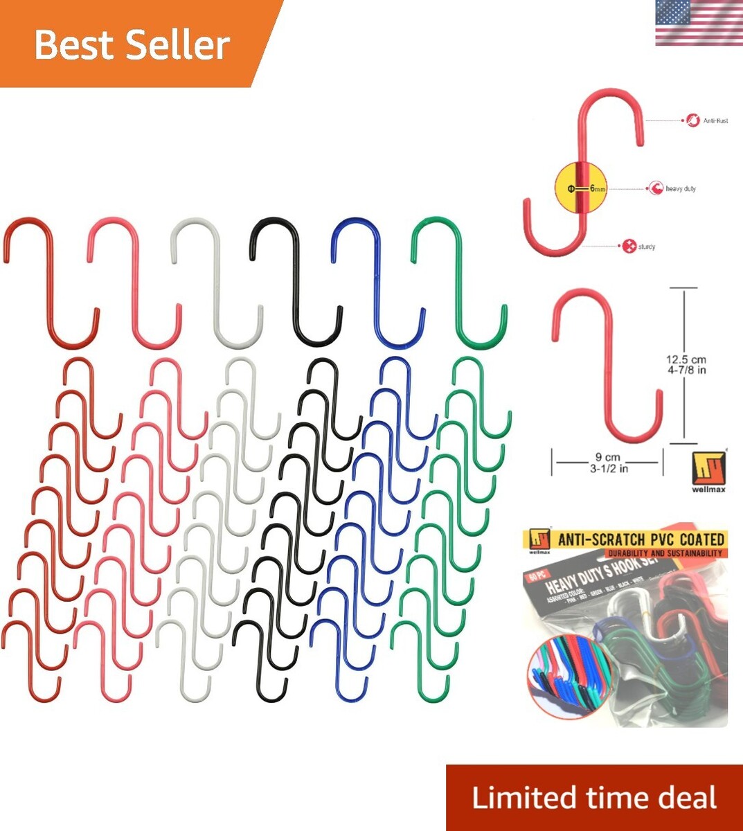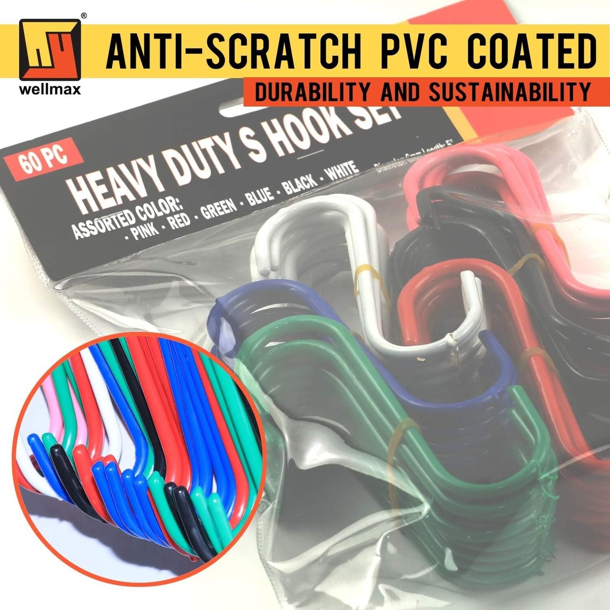 60PCS S Hooks for Hanging, Heavy Duty S Shaped hooks, Colored Metal S hook Se...