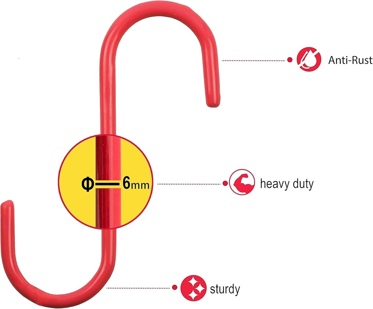 60PCS S Hooks for Hanging, Heavy Duty S Shaped hooks, Colored Metal S hook Set for hanging plants, closet, kitchen, pot rack, and pots and pans. 5 inches long and 6mm thick