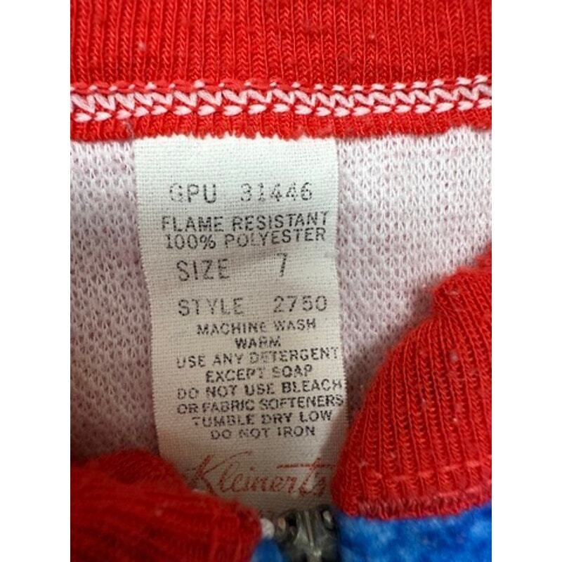 Tagged Size 7 (child). Classic footed, zip-front one-piece silhouette.