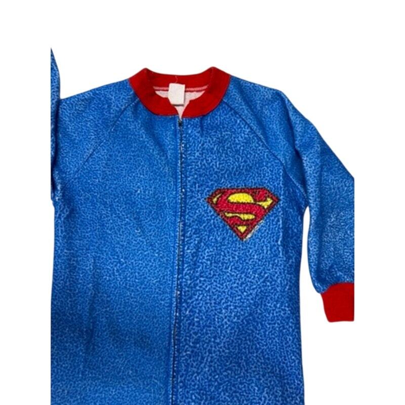 What you?ll love about these vintage Superman footed pajamas is the bold, classic superhero look ? bright blue body, red cuffs and feet, and the iconic chest emblem. A fun, nostalgic piece that works equally well as vintage sleepwear or a costume-style one-piece for collectors and fans.