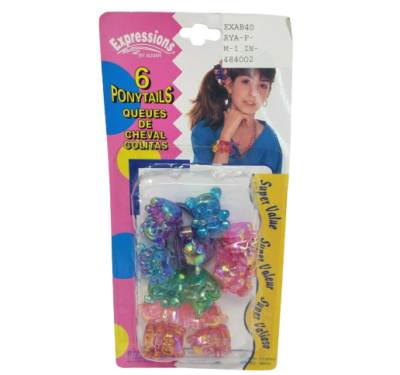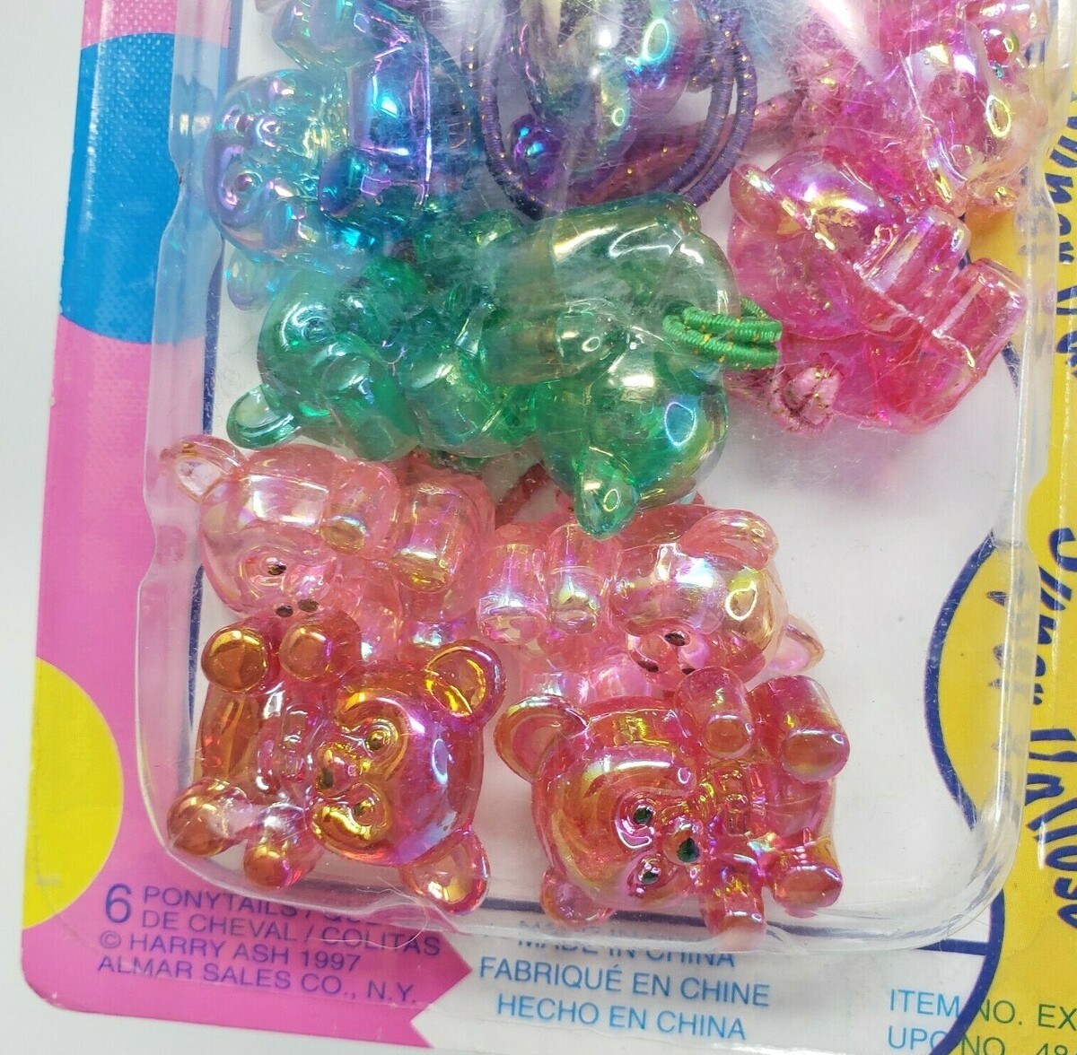 6 VINTAGE 1997 EXPRESSIONS COLORFUL PLASTIC PONYTAILS PONYTAIL HAIR TEDDY BEARS