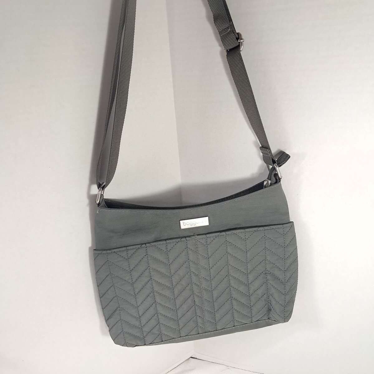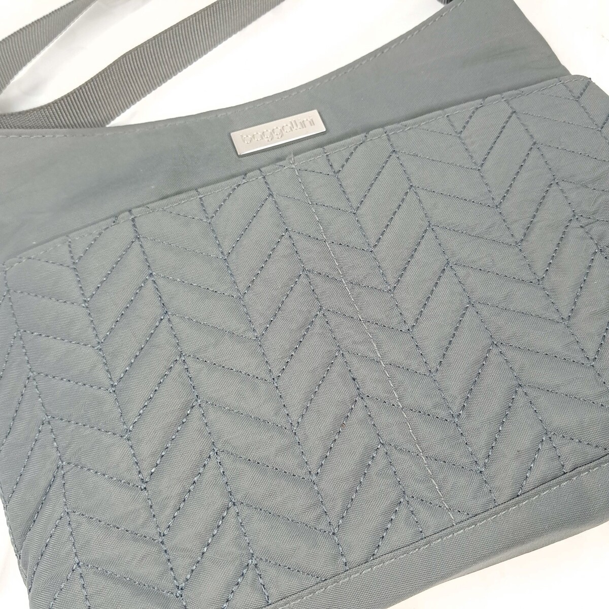 Baggallini mini bag purse grey gray quilted chevron travel crossbody minimalist