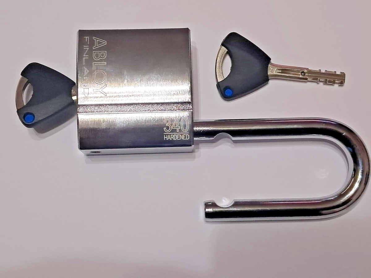 About this item HIGH SECURITY: Features PROTEC2 cylinder technology with rotating detainer disc mechanism for exceptional pick resistance and key control CONSTRUCTION: Stainless steel body and hardened boron steel shackle provide superior protection against cutting and corrosion Body Width 57mm, Shackle clearance 50mm, Shackle diameter 10mm KEY SYSTEM: Protec2 Includes two keys with sophisticated design that prevents unauthorized key duplication Body :Chrome on hardened steel Shackle: Boron steel