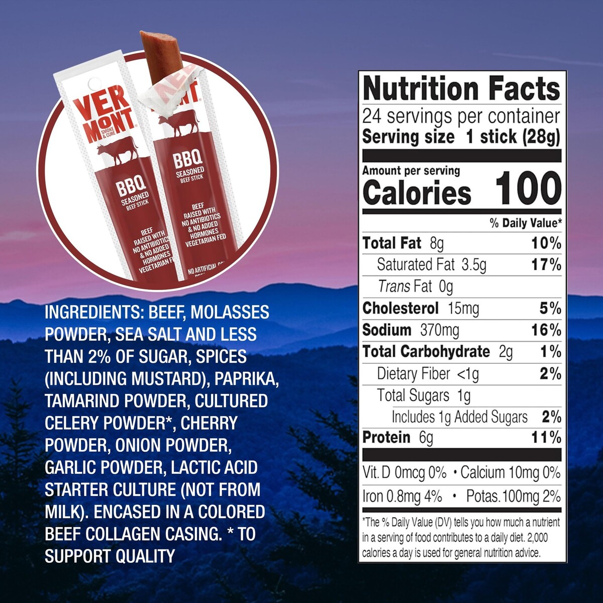 READ (24) Snack Sticks by Vermont Smoke Cure ? BBQ Seasoned ? Beef ? Healthy Meat Protein ? 1oz Jerky Stick ? 24 count carton