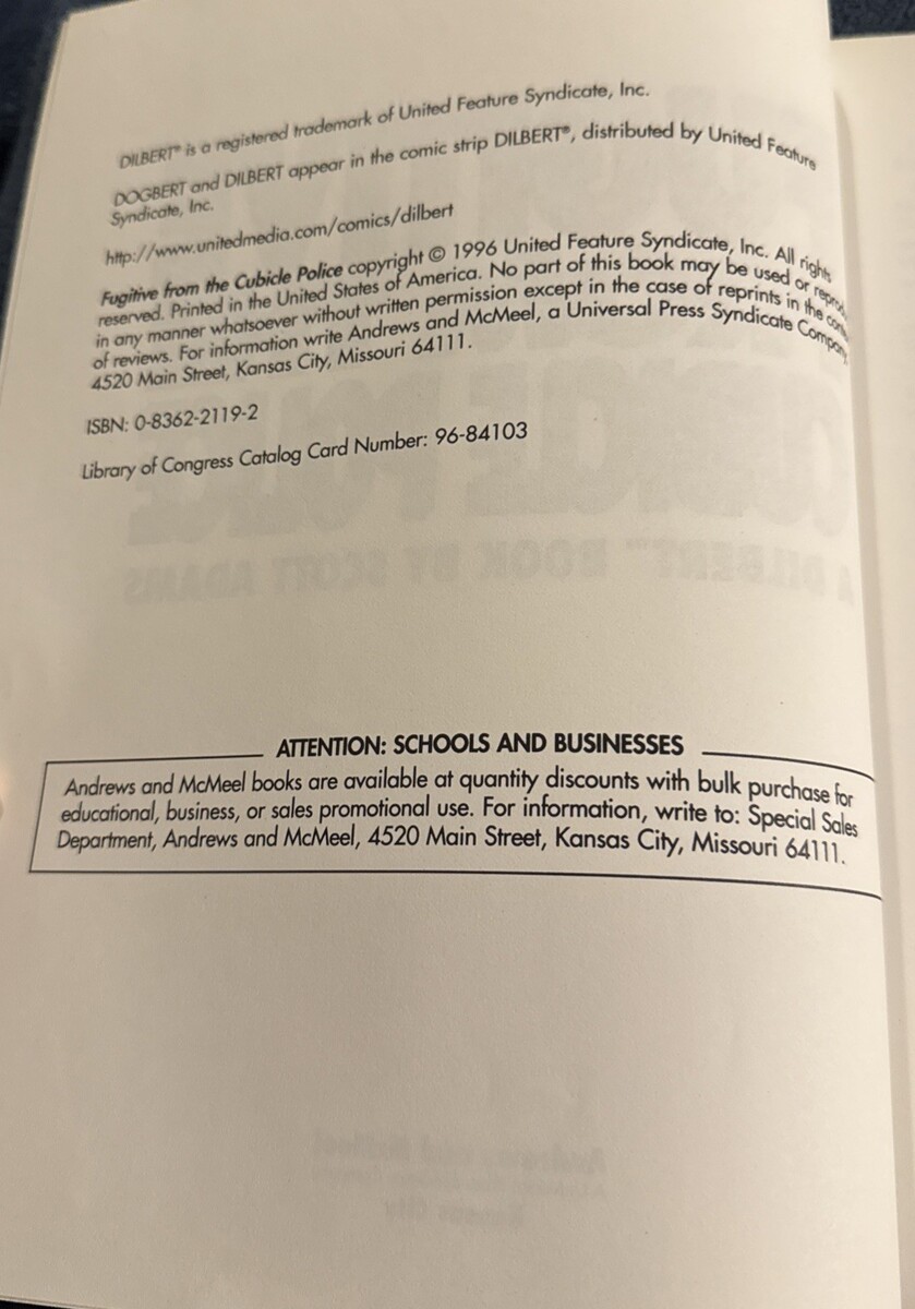 "Fugitive from the Cubicle Police" is a humorous and satirical comic strip by Scott Adams, featuring the beloved character Dilbert. Published by Andrews McMeel in 1996, this paperback book is part of the Dilbert series and is written and illustrated by Scott Adams himself. With a witty and sarcastic tone, this comic strip showcases Dilbert's unique perspective on the world of office politics and inneffectual management styles. Perfect for fans of comic strips and humor/satire genres, this book is sure to provide entertainment and amusement for readers.