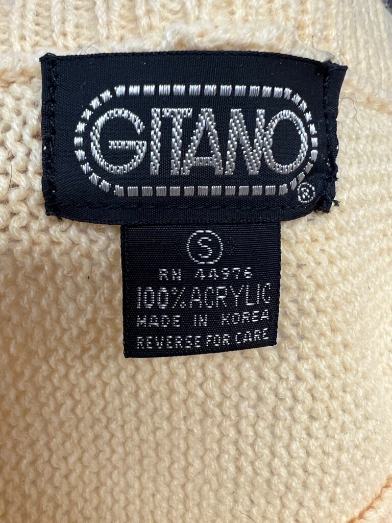 Gitano was a popular 1980s brand known for trend-conscious yet affordable fashion. This pullover captures the era?s love of playful sleeve volume and girlish detailing.
