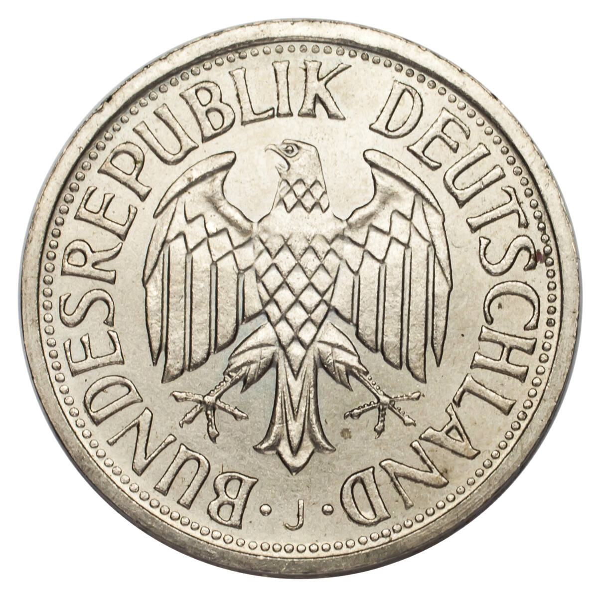 1965-J German 1 Mark Coin in Uncirculated Condition Hamburg Mint KM #110
