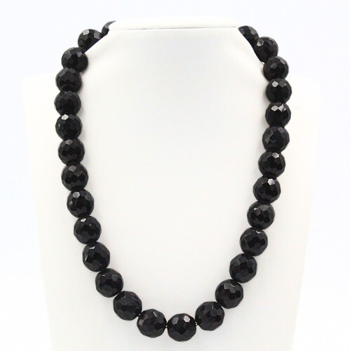 Faceted Black Jet Necklace 24" Screw Clasp