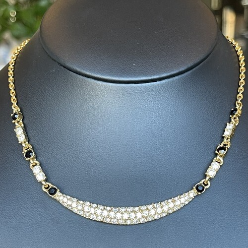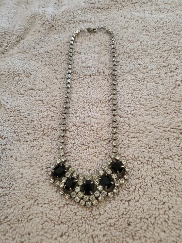 Vintage Black Clear Rhinestone Collar Necklace