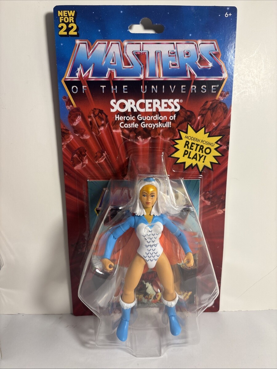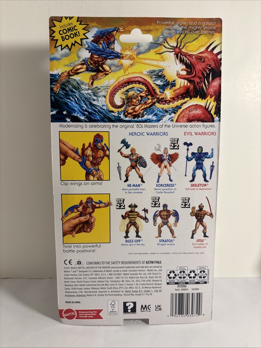 The product is a set of two 2022 Masters Of The Universe figures by Mattel, featuring the characters Stratos and Sorceress. These action figures are brand new and come in their original packaging. Fans of the Masters of the Universe franchise will enjoy adding these collectible toys to their collection, representing iconic characters from the series. Perfect for both play and display, these figures are a must-have for any action figure enthusiast.