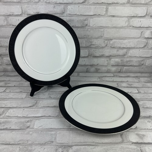 Bristol Fine China Japan Merilyn Set of 2 Dinner Plates White and Black