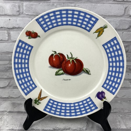 Tabletops Unlimited Fresh Vegetables Garden Dessert Bread Plate Tomato Blue
