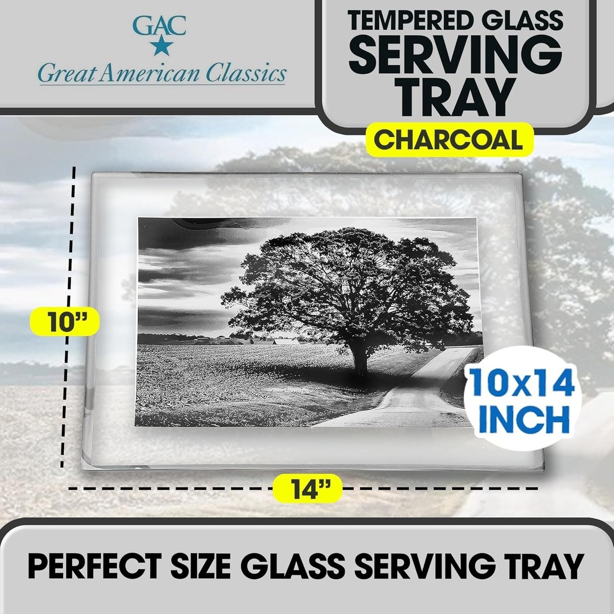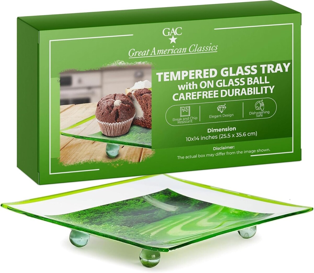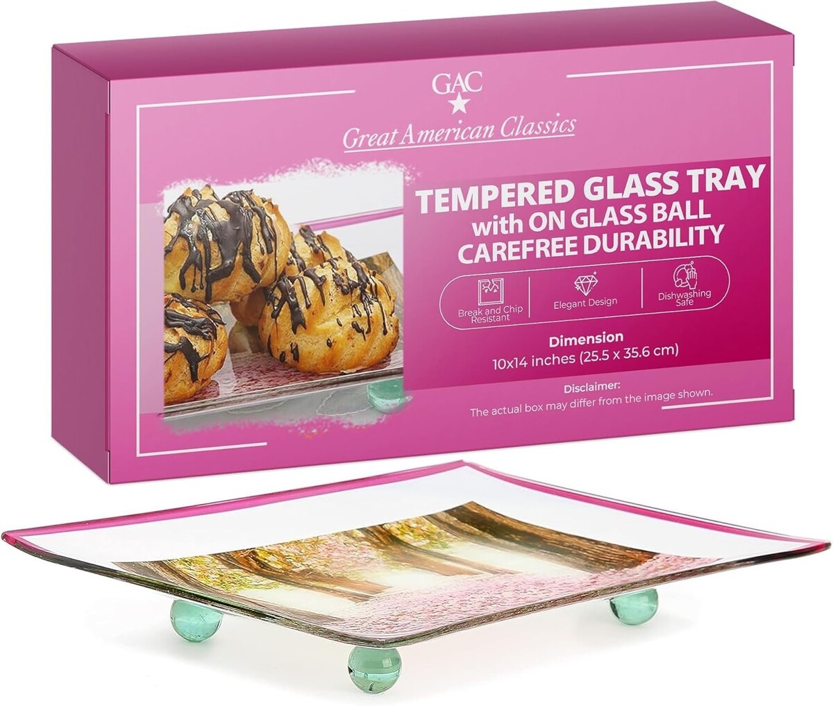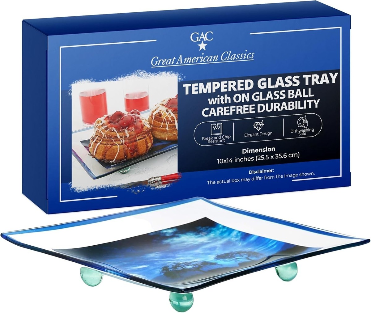 Add a touch of elegance and durability to your dining or serving setup with the GAC Rectangular Tempered Glass Serving Tray on Glass Ball. This 10x14 inch serving platter is crafted from tempered glass, known for its resistance to breakage and chipping, ensuring it can handle both everyday meals and special events. With its stunning colored glass, this tray is as eye-catching as it is functional, making it the ideal choice for a variety of occasions such as family dinners, cocktail parties, and festive celebrations. The tray's unique glass ball feet elevate the design, adding a modern and artistic flair to your table presentation while offering increased stability. The sleek, rectangular surface is for serving a wide range of items whether it's appetizers, desserts, drinks, or even an assortment of cheeses and charcuterie. The tempered glass not only provides a sophisticated look but also ensures long-lasting durability. Whether you're serving indoors or outdoors, this break and chip-resistant tray will stand up to frequent use without losing its luster or structural integrity. Designed to impress, the GAC Tempered Glass Serving Tray offers versatility and practicality, making it an ideal addition to your dining essentials. Use it to add an upscale, polished feel to any event, or simply enjoy it for daily meals with your family. The GAC Rectangular Tempered Glass Serving Tray on Glass Ball is a beautiful combination of modern design and lasting durability. Whether you're entertaining guests or enjoying a quiet meal at home, this tray offers a chic, practical solution for serving and presenting food in style. Make every dining experience special with the sleek, break-resistant GAC serving tray an elegant addition to any home.