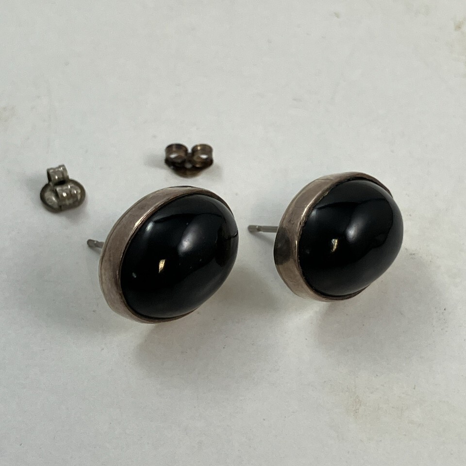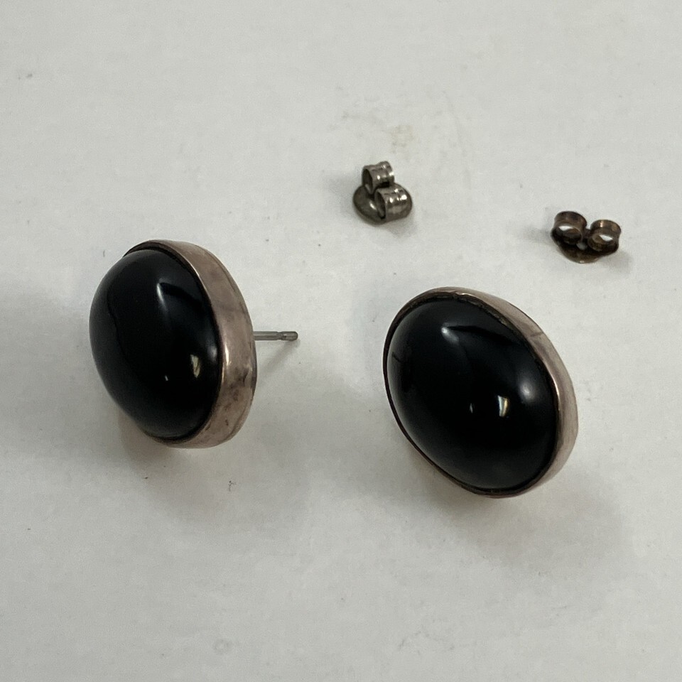 925 Sterling Silver Vintage Mexico Black Onyx Earrings .75 Inches Long 6g
