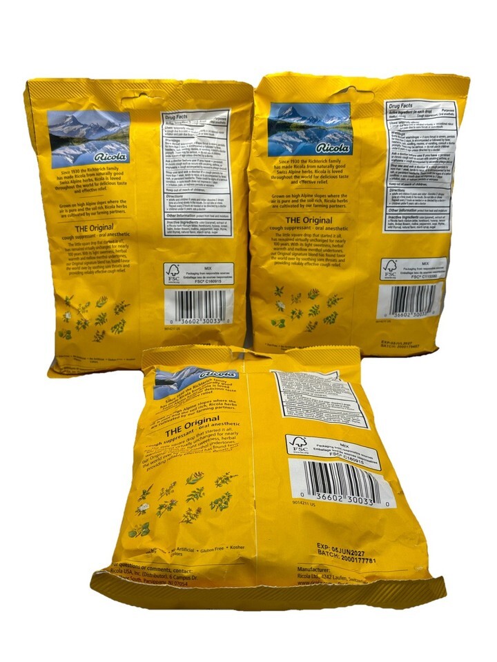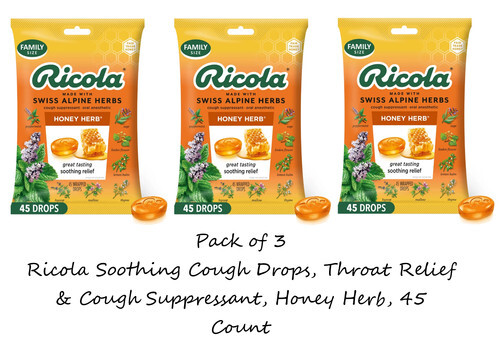 3PK-Ricola Original Herb Soothing Cough Drops, Throat Relief Cough ,45 ct Exp: 07/27