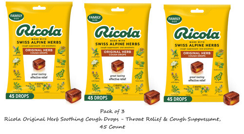 3PK-Ricola Original Herb Soothing Cough Drops, Throat Relief & Cough ,45 ct