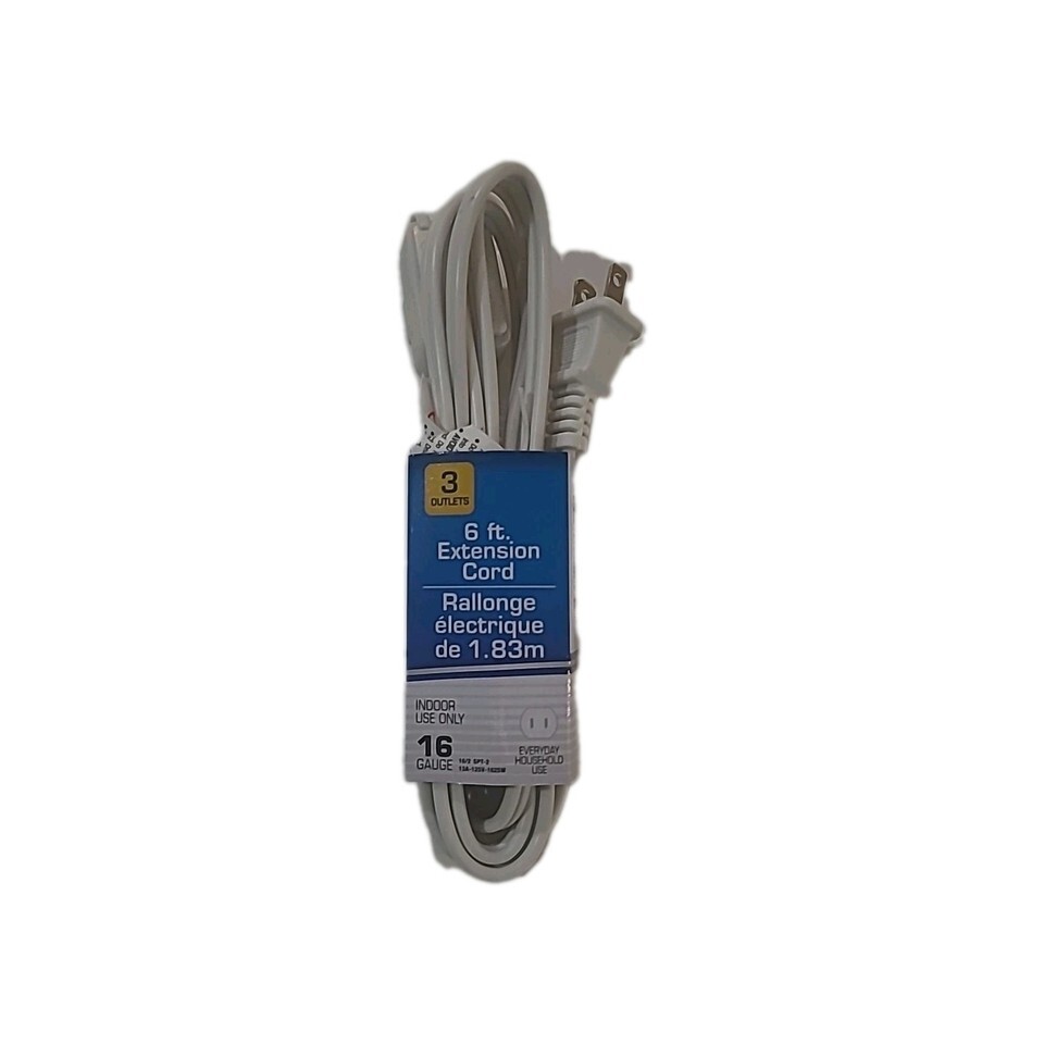 Extension Cord 6 ft. White 3 Outlets 16 Gauge