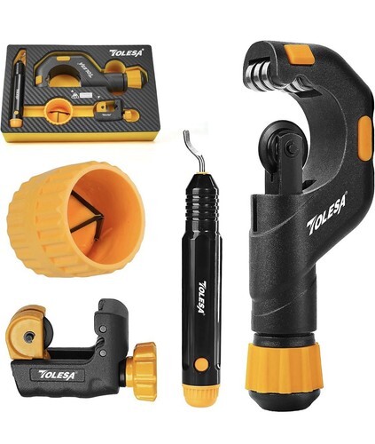 METAL TUBING COMPACT CUTTER: Makes it quicker and easier to cut copper, brass, and aluminum tubing with a capacity of 1/4 in. to 1-1/8 in. in tight spaces that restrict rotation by hand