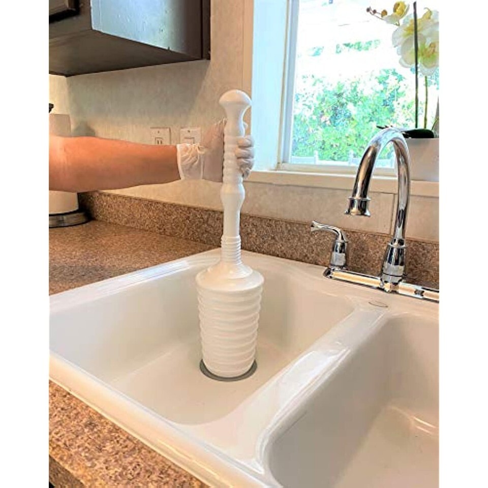This all purpose plunger with bucket is great for sinks. Its stream line design allows this plunger the power and flexibility patented air release with a quarter turn of the hand. Ideal for the hard to reach drains and a bucket for convenient storage.