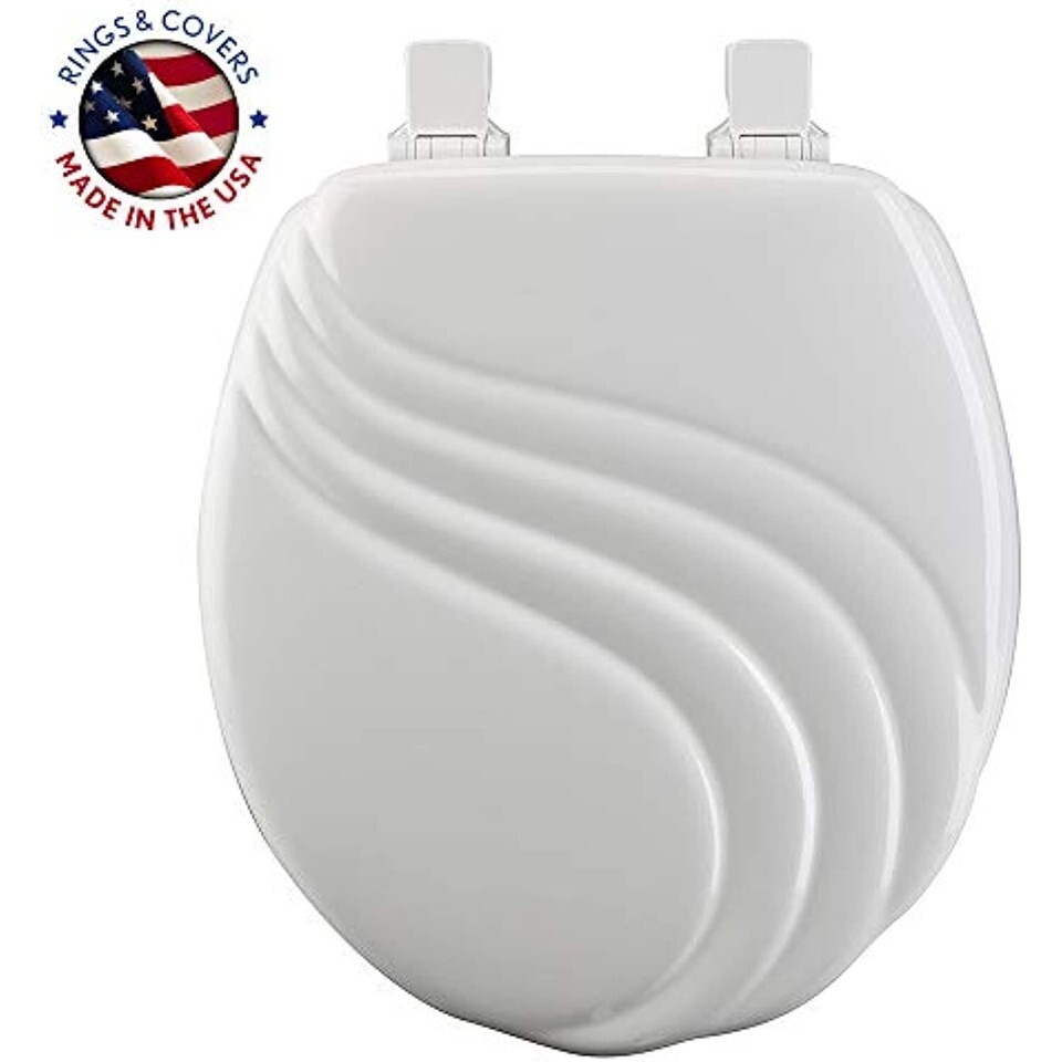 MAYFAIR 27ECA 000 Sculptured Swirl Toilet Seat will Never Loosen and Easily Remove, ROUND, Durable Enameled Wood, White