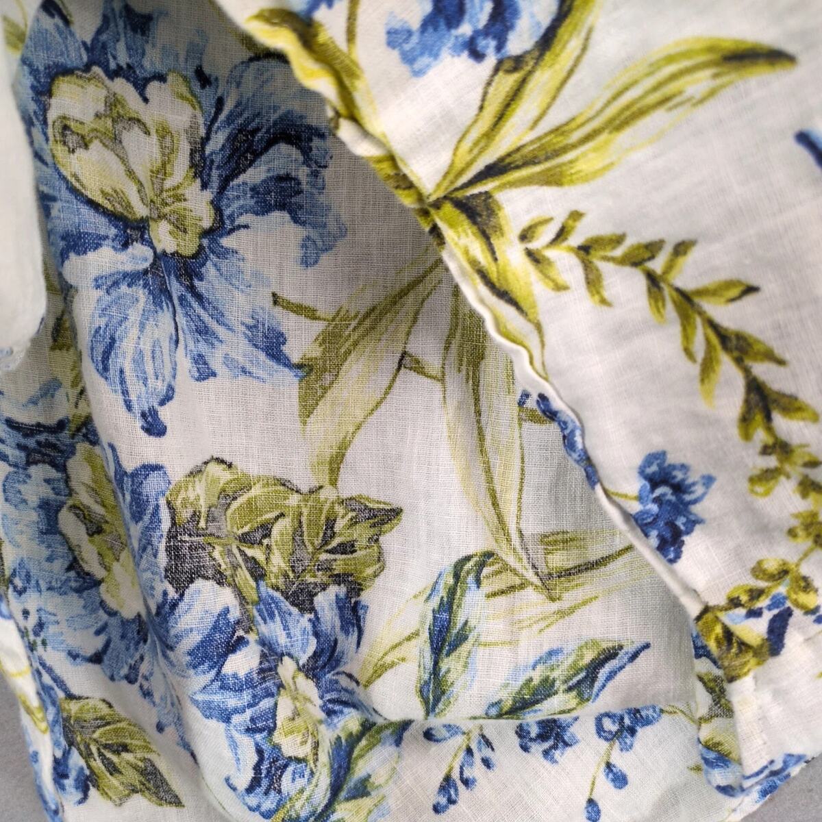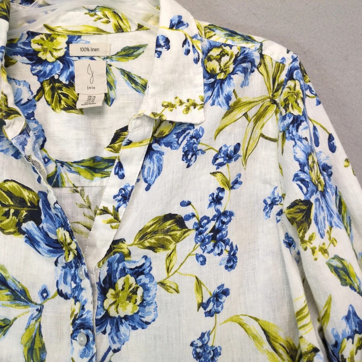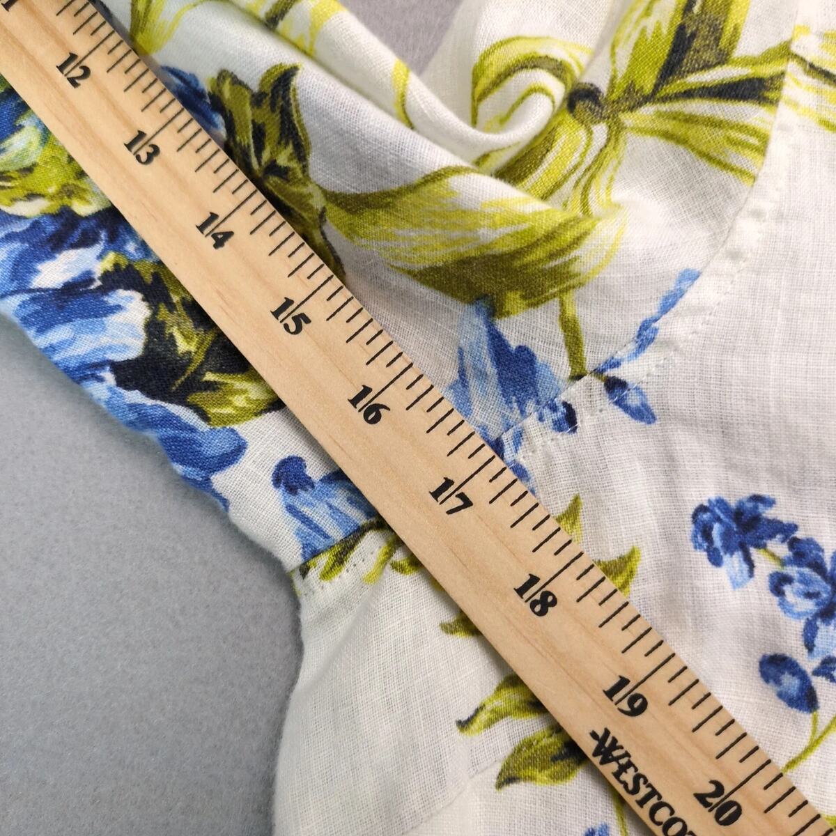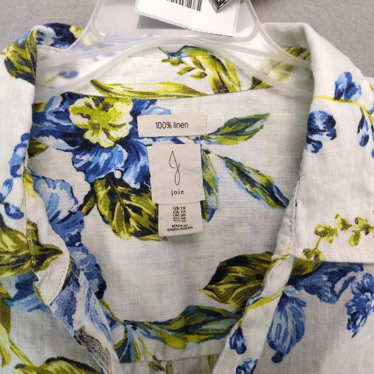 Joie Blue Floral 100% Linen Button Front Shirt Women's Plus Size 1X Roll Tab Slv