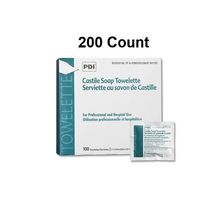 Quantity: 200 Packet, 100/Box, 2 Boxes of 100, You will get 200 - PDI Castile Soap Towelette