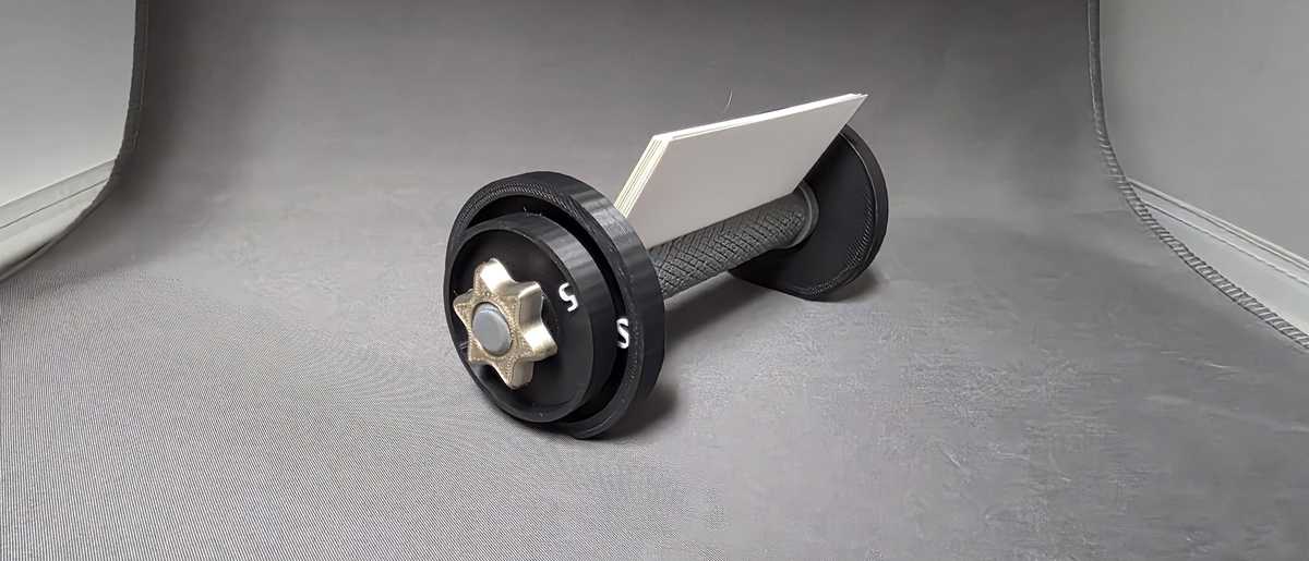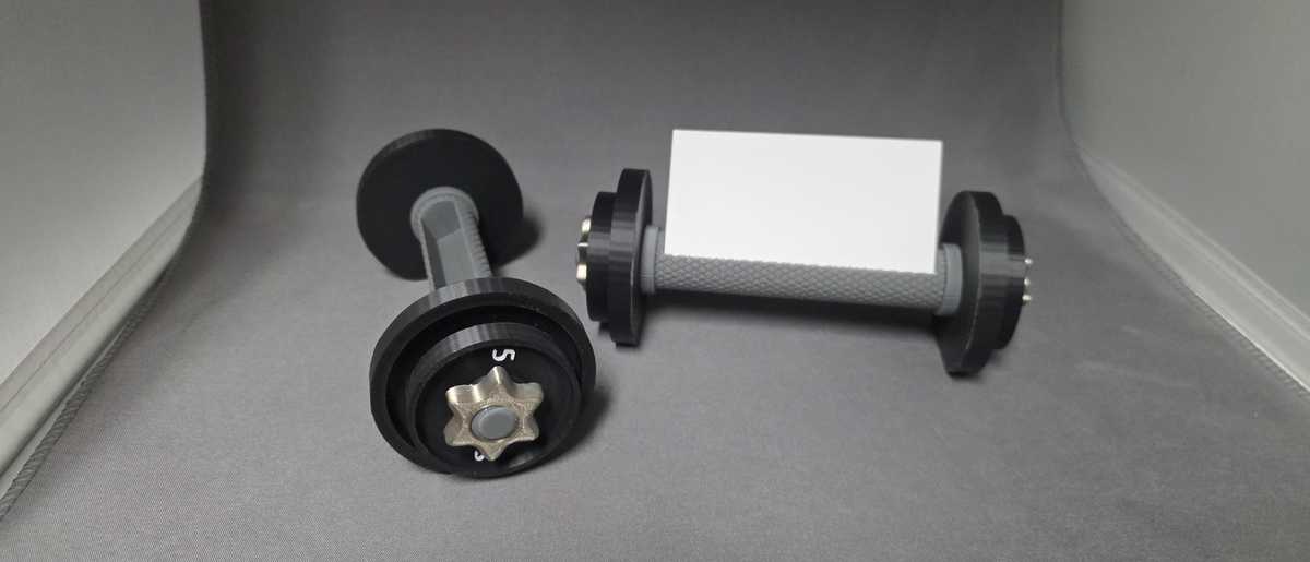 This 3D printed fitness gym business card holder is a unique and stylish accessory, designed in the shape of a dumbbell. It features miniature weights and screw nuts at both ends, adding to its realistic appearance. The handle is adorned with knurling, mimicking the texture of actual gym equipment, making it a perfect blend of functionality and aesthetic appeal.
