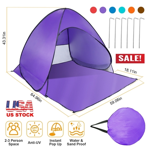 Pop Up Beach Tent Sun Shade Shelter Anti-UV Waterproof Tent Canopy for 2/3 Man