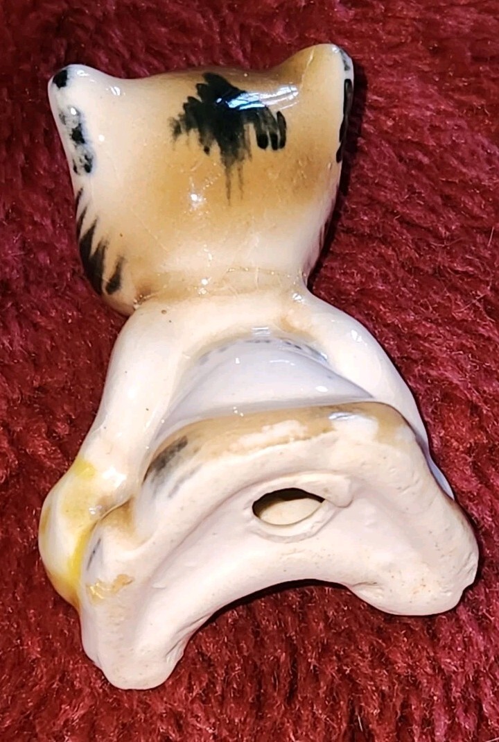 Cute vintage cat shaker. Maker is unknown. Unmarked Looks like Japan style. Has a chip on the ear. Measures 2.5 inches tall.