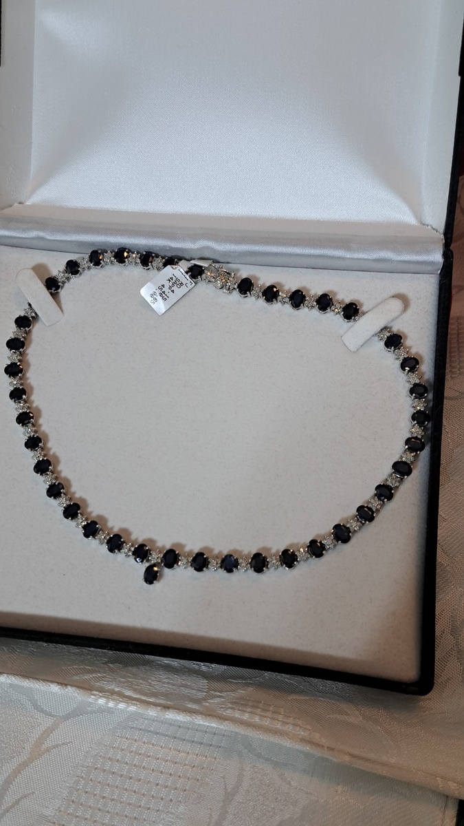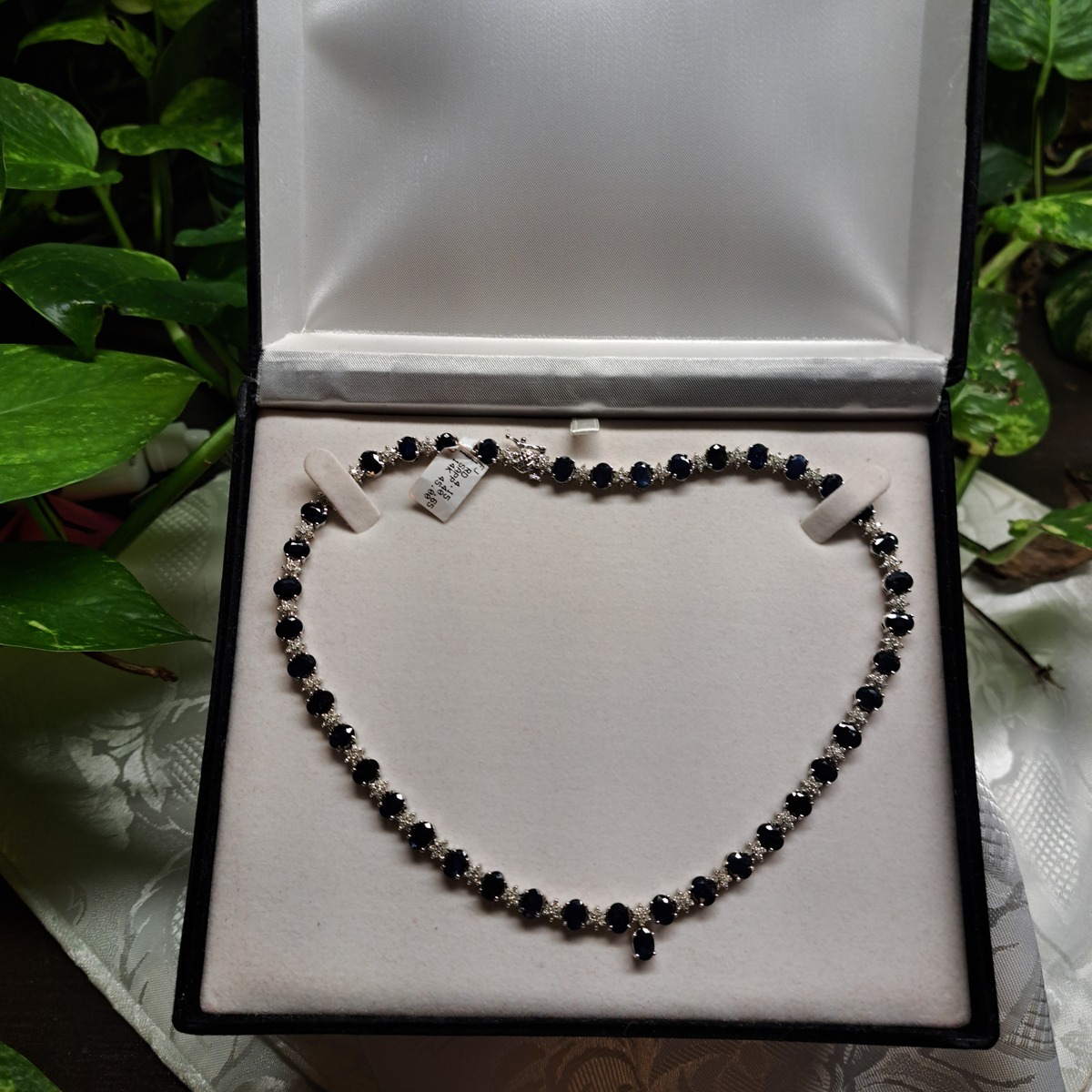 14K Solid White Gold Midnight Blue Sapphire & Diamonds 19" Sap 45CTW Dia 4.15CTW