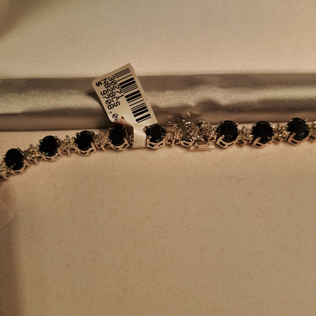 This 45 Gram Beauty sports 42 natural deep midnight blue matched and mated oval cut sapphires having a total carat weight of 45cts or a little over 1.07ct each stone Then of course there is 4.15carats of Diamonds in 42 clusters 4.9 points per for a total weight of 49.15 carats.