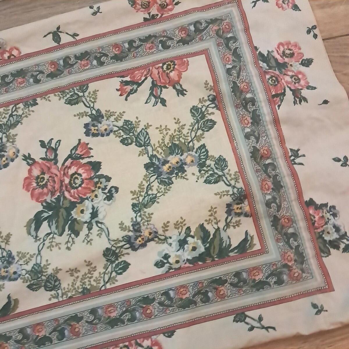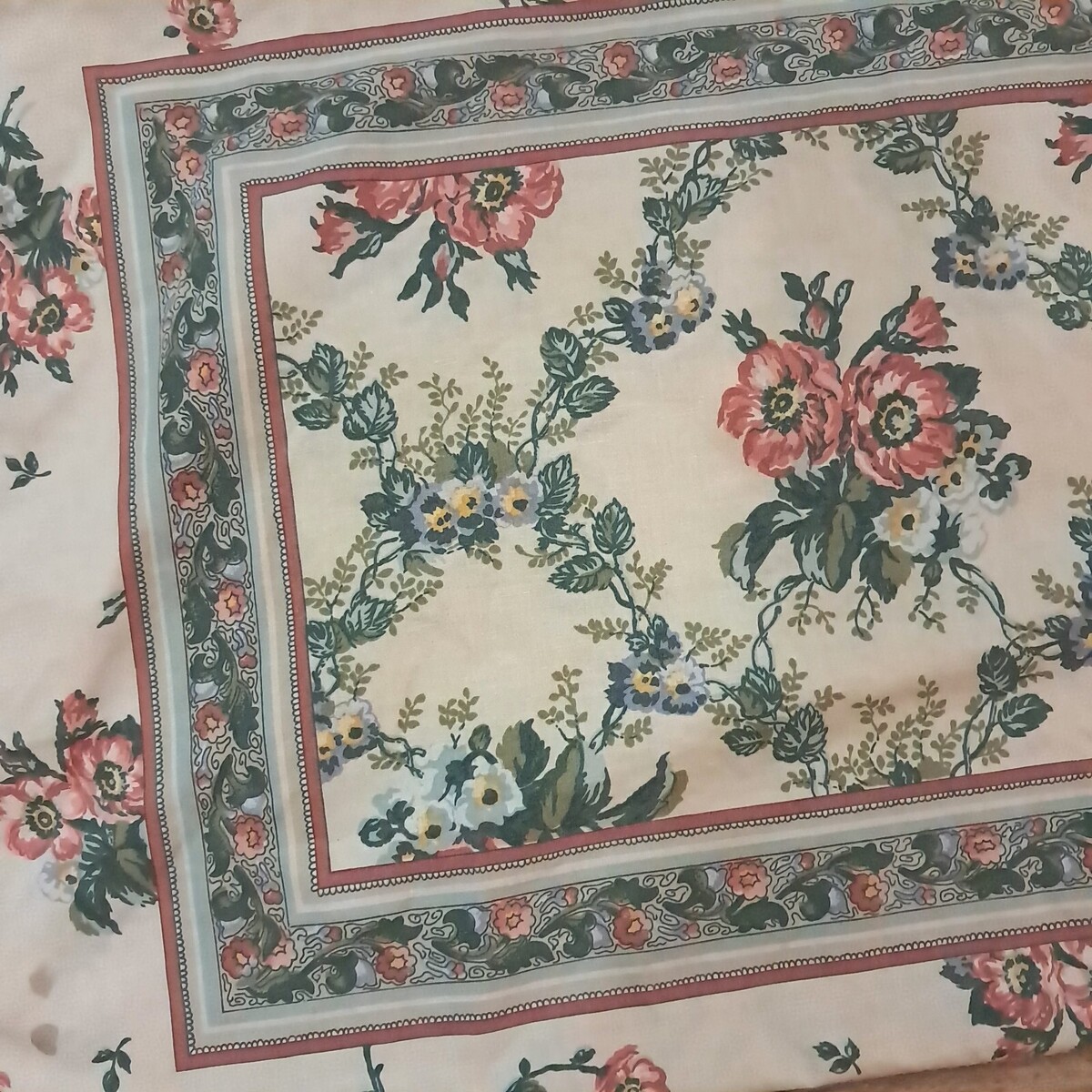 VINTAGE LOUIS NICHOLE STANDARD PILLOWCASE DUBONNET TUSCAN FLORAL poppy Tan