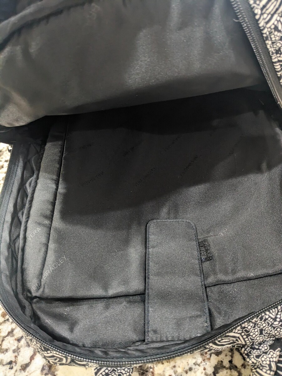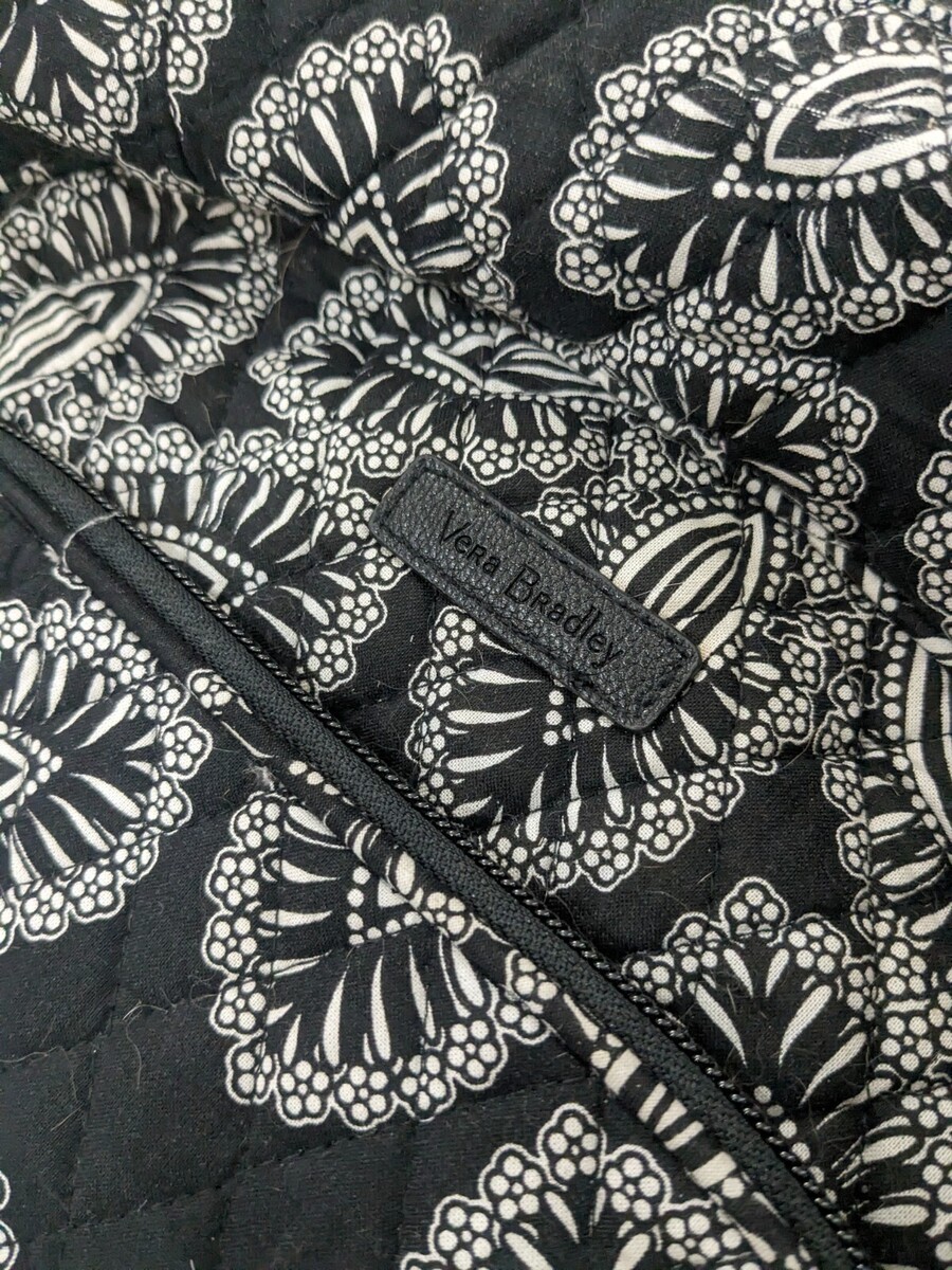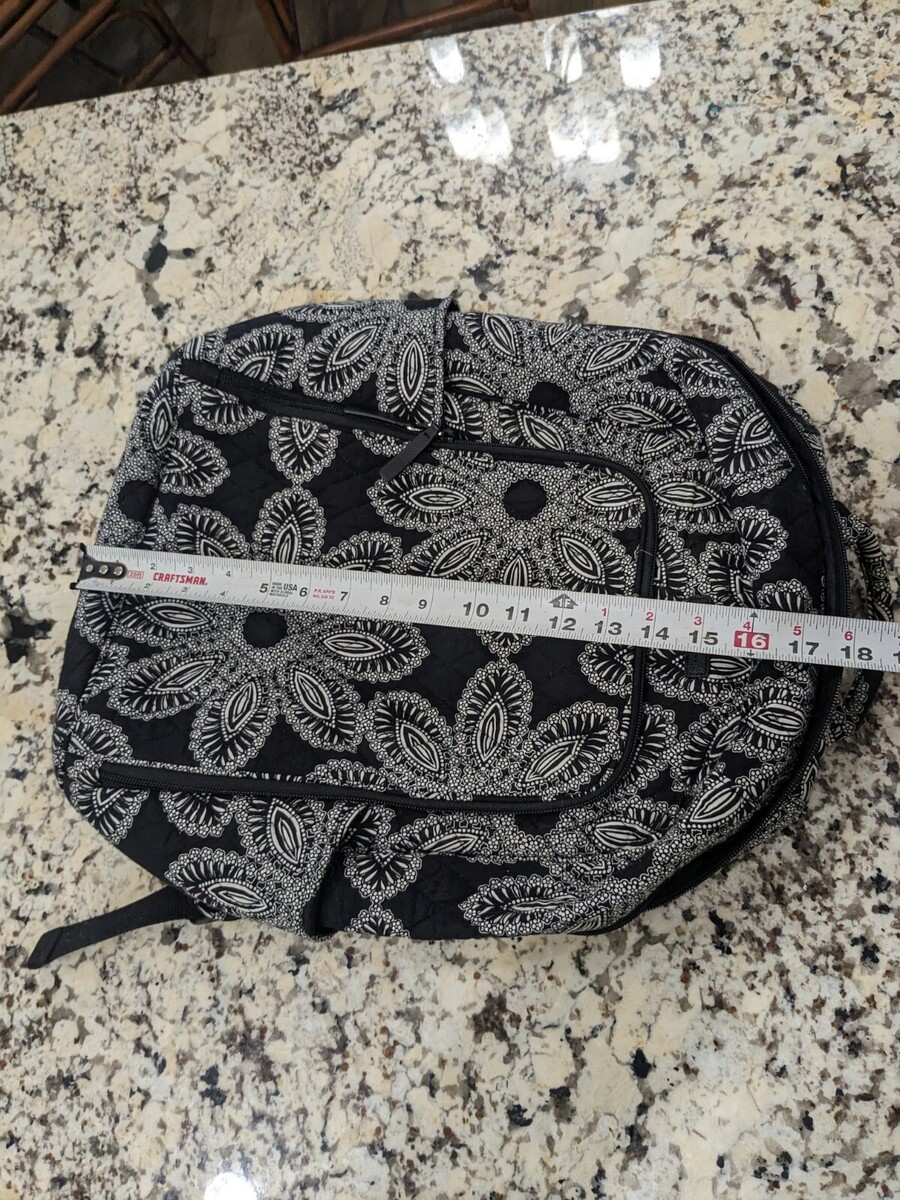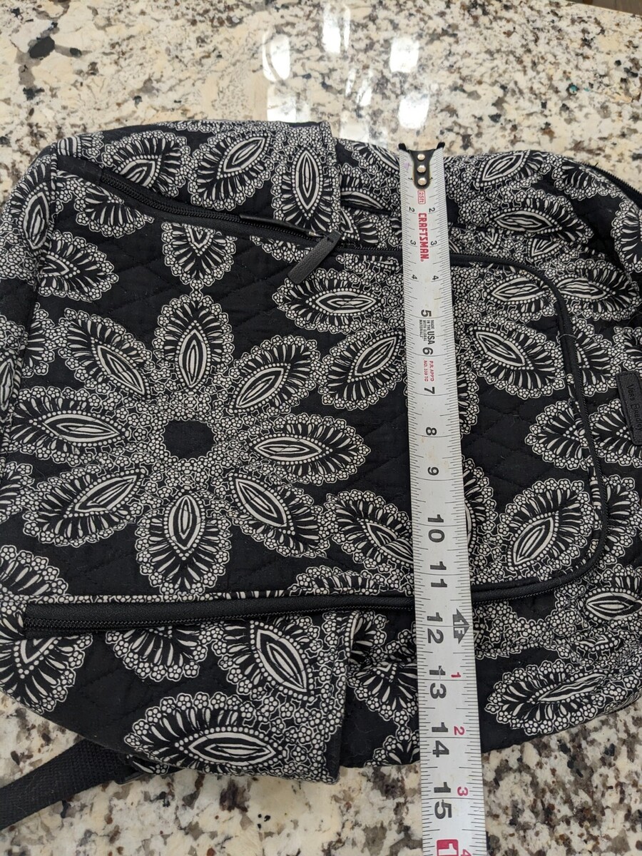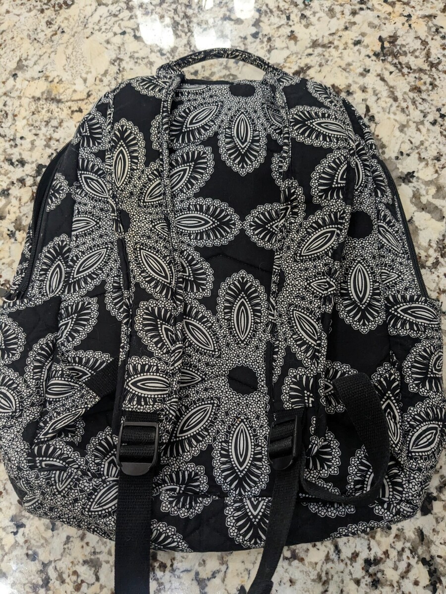 Vera Bradley Campus Backpack Paisley daisy floral black white cotton FOR REPAIR