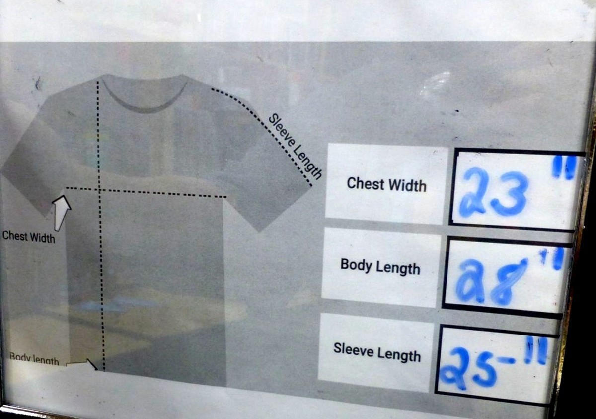 Chest Width = 23 Inches, Body Length = 28 Inches, Sleeve Length = 25 Inches