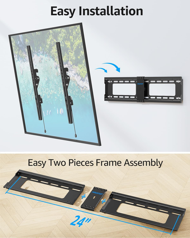 More Stable, Strong Support - Easy two pieces Frame installation for up to 24" Wood studs. A tilting TV bracket combines the slim profile of a fixed mount with the flexibility of angle adjustment, giving you clearer view, less glare, and more comfort.