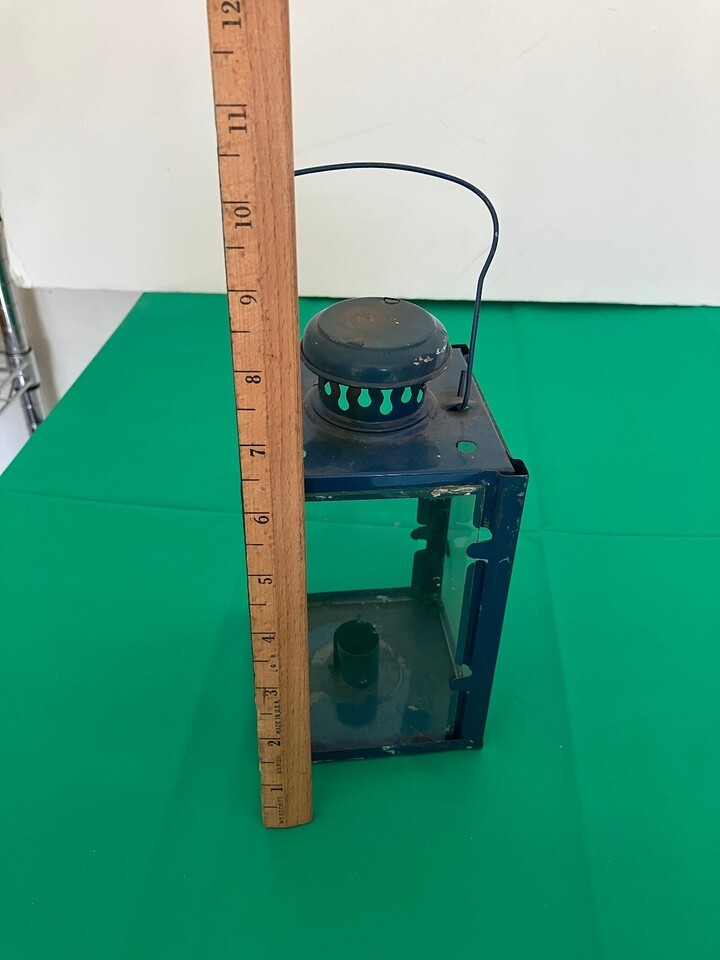 Metal and Glass Candle Holder blue lantern vintage made in England