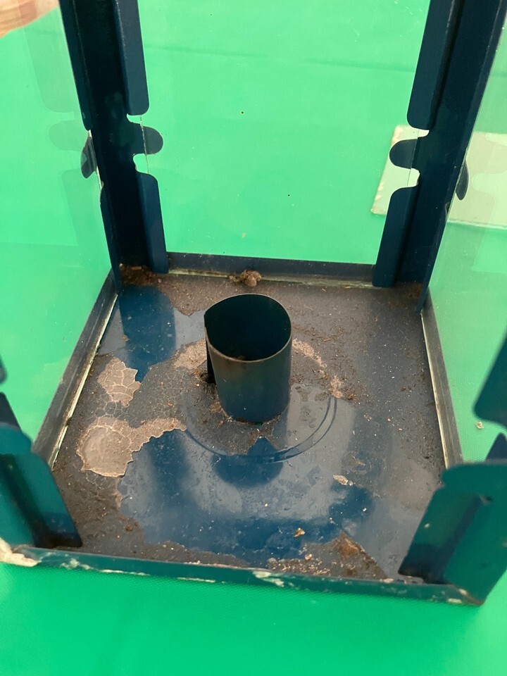 Preowned used condition with lots of wear and aging to metal (see picture) Some wear and chipping to glass panels