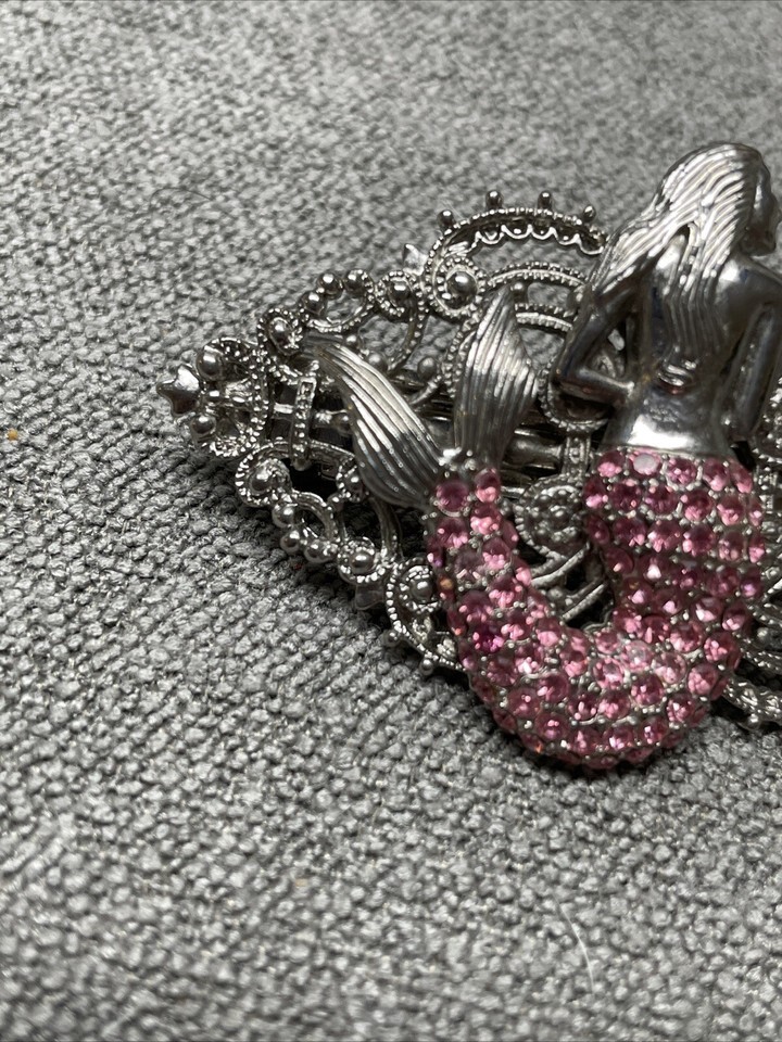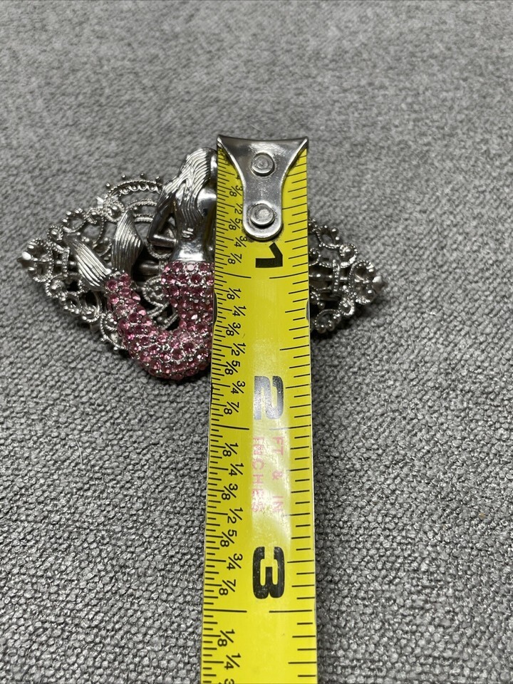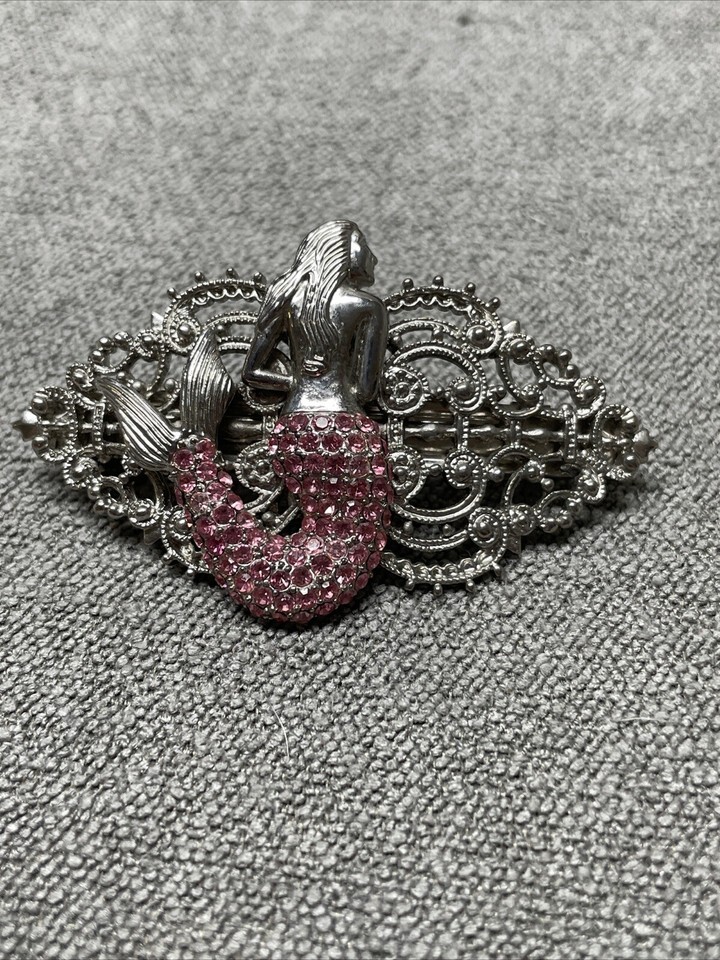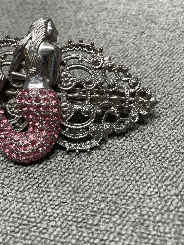 Good usable condition. Beautiful ornate hair clip with a mermaid. Her tail is adorned with pink rhinestones. Clasp is tight. Please see pictures for condition details and measurements.