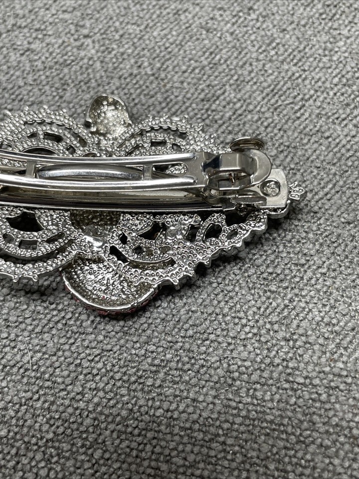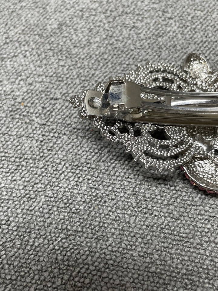 Silver Tone Ornate Mermaid Hair Clip Pink Rhinestones Fashion Jewelry KG