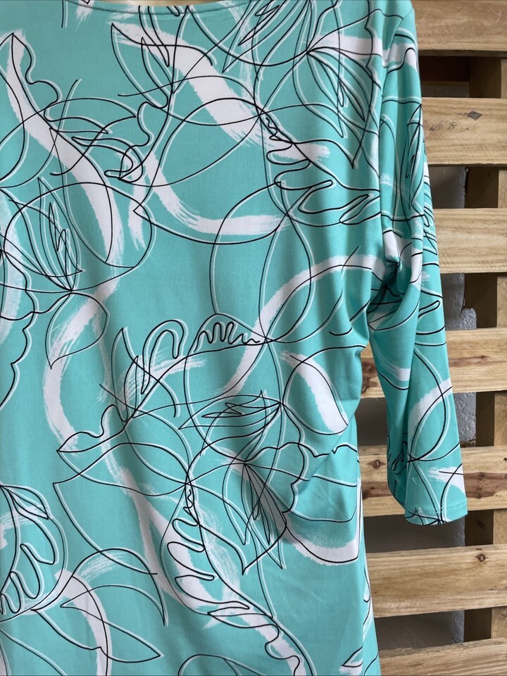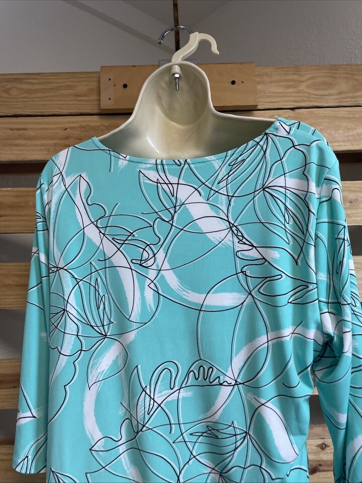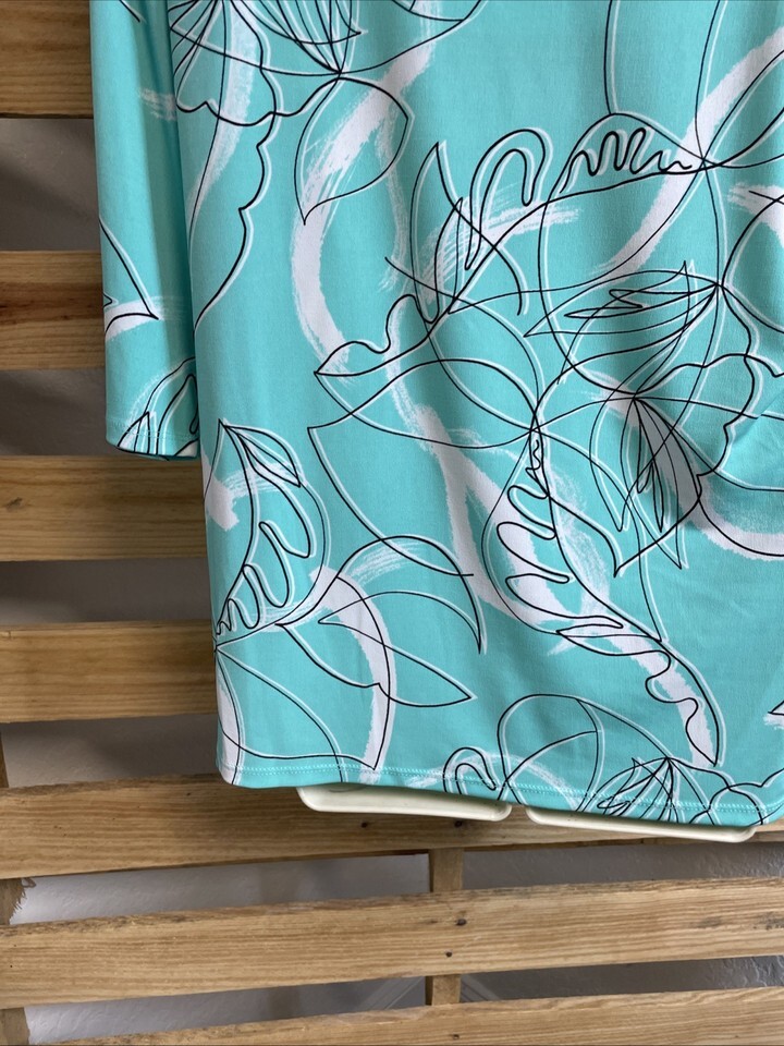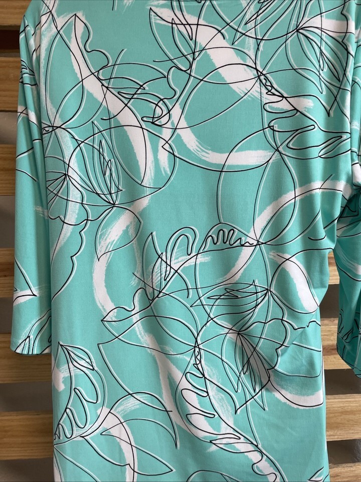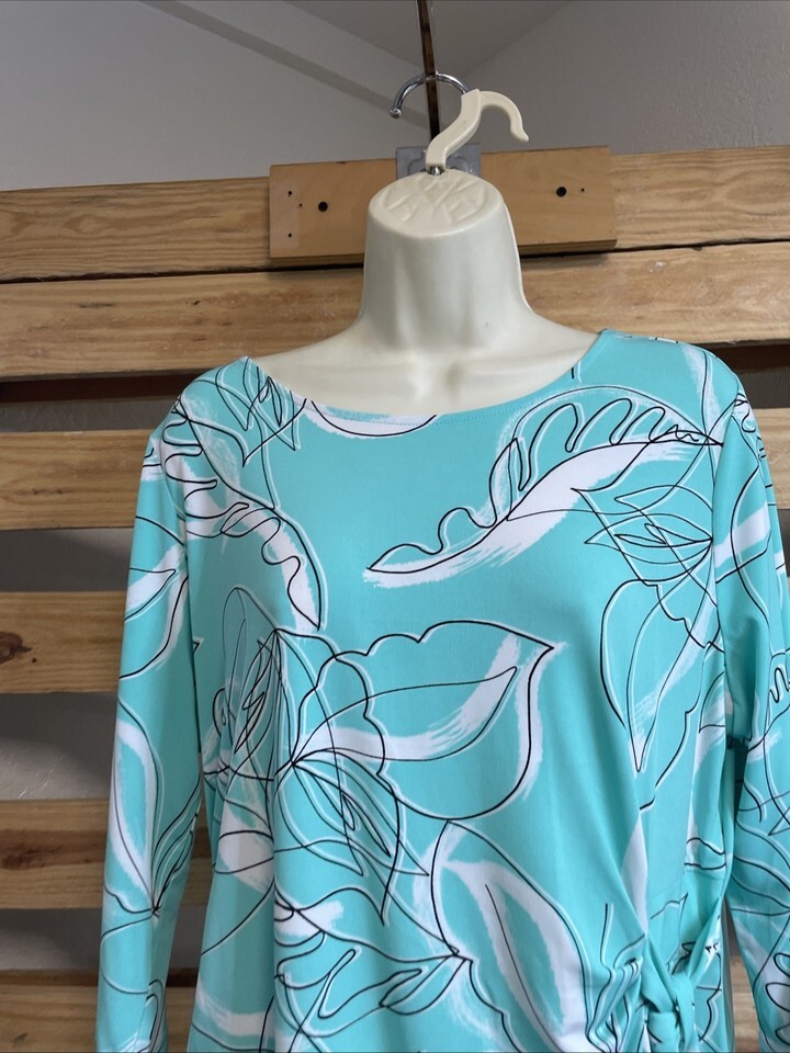 Alfani Mint Green White Floral Bow Top Blouse Woman's Size L Careerwear KG JD