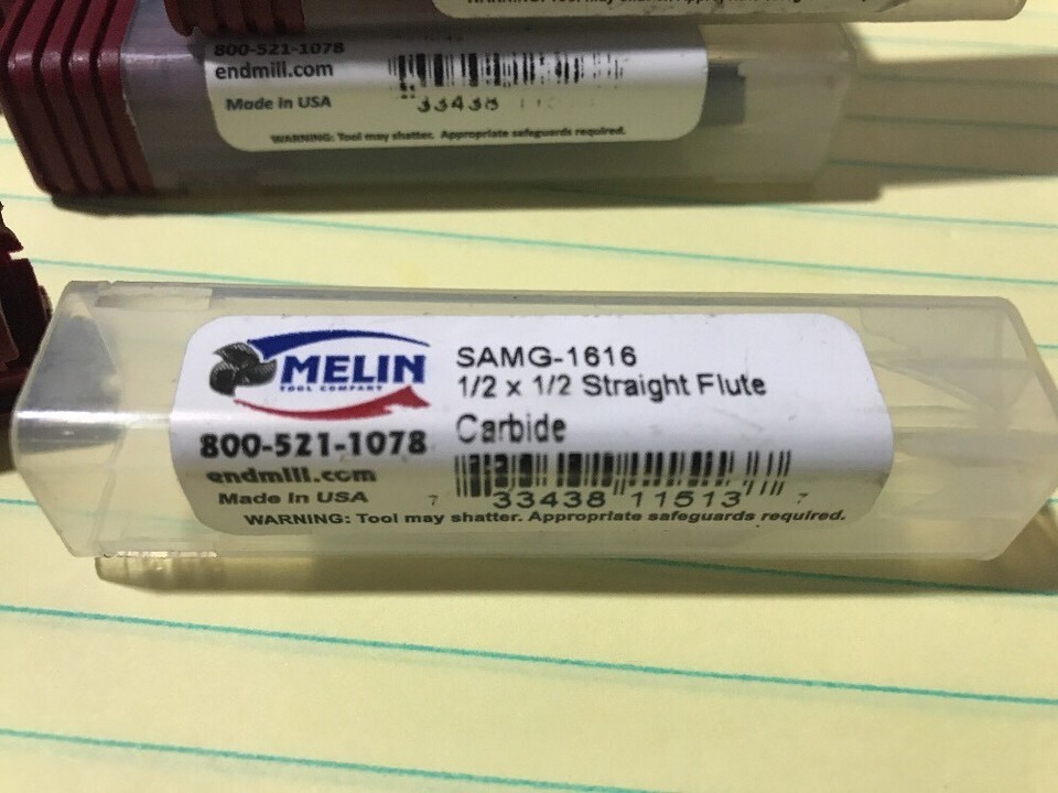 1/2 X 1/2 X 6/16 Straight Flute Carbide Router Drill Bit Melin Made In USA CNC