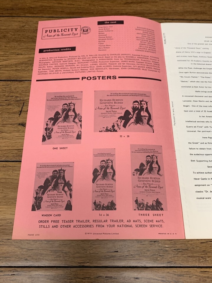 Anne Of The Thousand Days Vintage Press Kit Movie Poster Original Rare CV JD