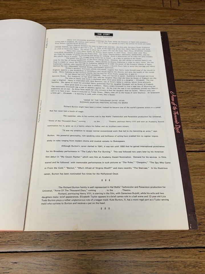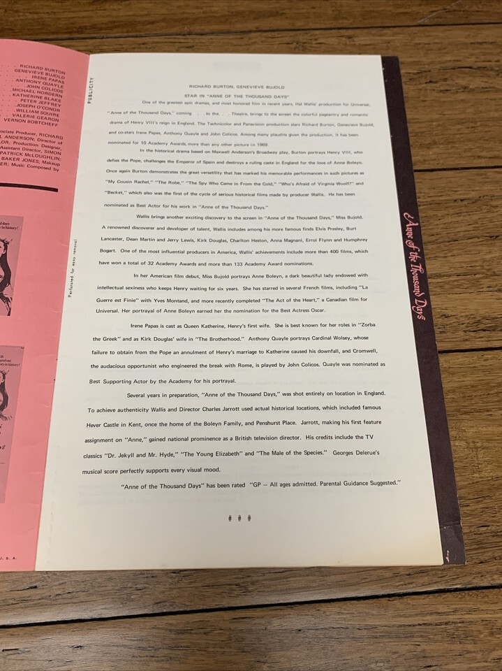 Anne Of The Thousand Days Vintage Press Kit and similar items
